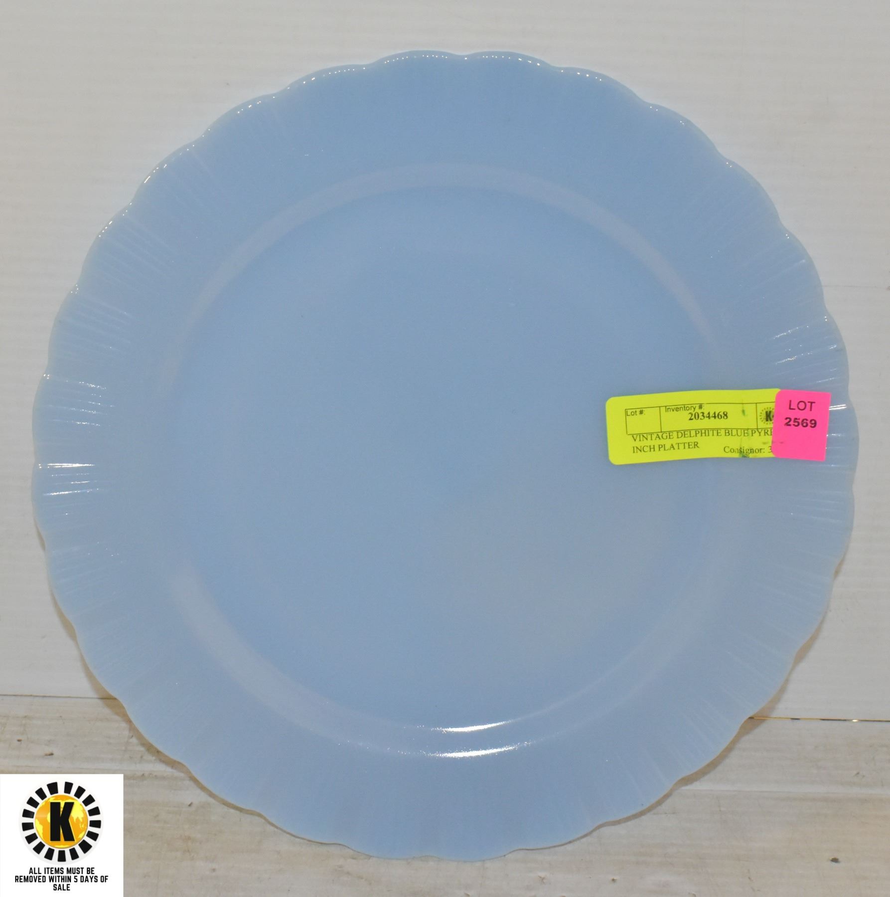 VINTAGE DELPHITE BLUE PYREX 12 INCH PLATTER