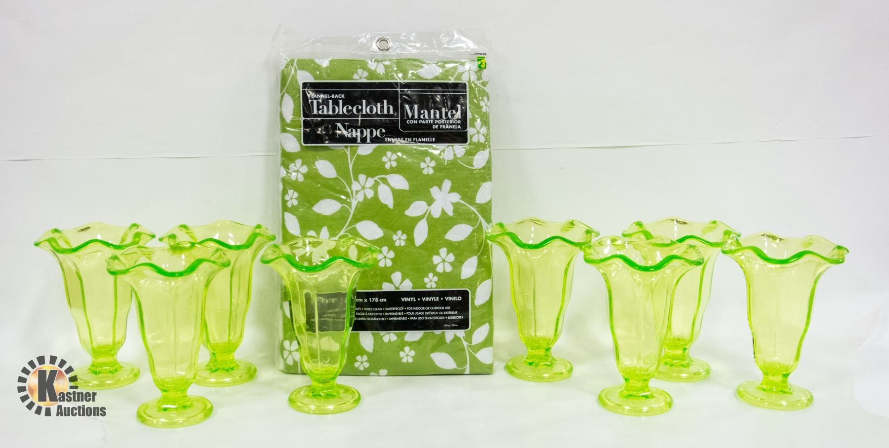 CLOTH SET OF 8 SODA SHOP STYLE PLASTIC DESSERT CUPS AND A HEAVY DUTY FLANNEL BACK TABLE CLOTH **ALL ITEMS MUST BE REMOVED BY 5PM SATURDAY, APRIL 15TH 2023. ALL REMAINING ITEMS WILL BE SUBJECT TO A $6.00 PER DAY STORAGE CHARGE. ANY ITEMS REMAINING AFTER MONDAY, APRIL 30TH, 2023 WILL BE CONSIDERED FORFEITED. NO REFUNDS WILL BE ISSUED FOR FORFEITED ITEMS. TO SCHEDULE A PICK UP APPOINTMENT CLICK HERE