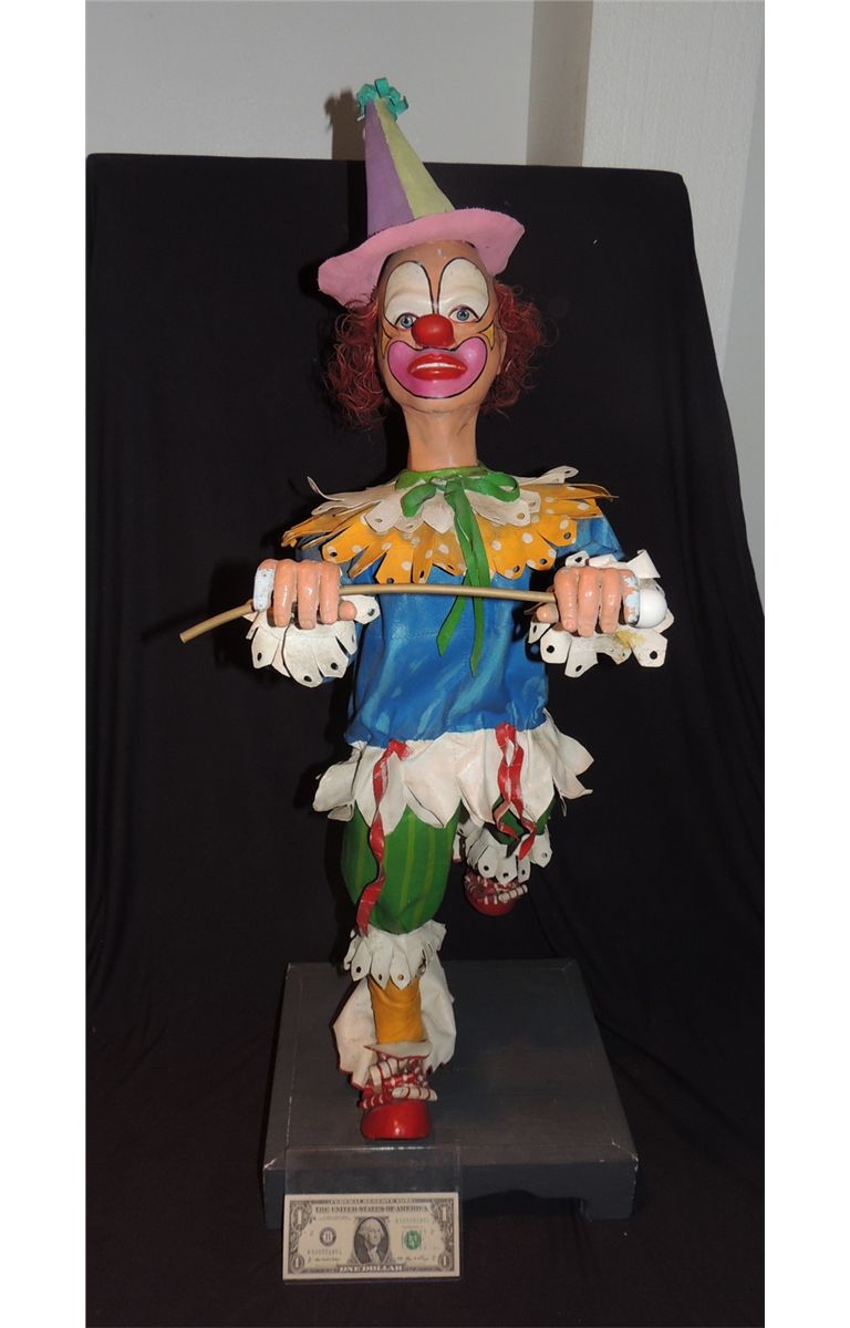 Offered here is an incredibly cool vintage clown statue that was part of the display of a Kid's Ride or attraction at Disneyland in the late 60's or early 70's, [It's A Small World?] or may be from Disney on Parade.