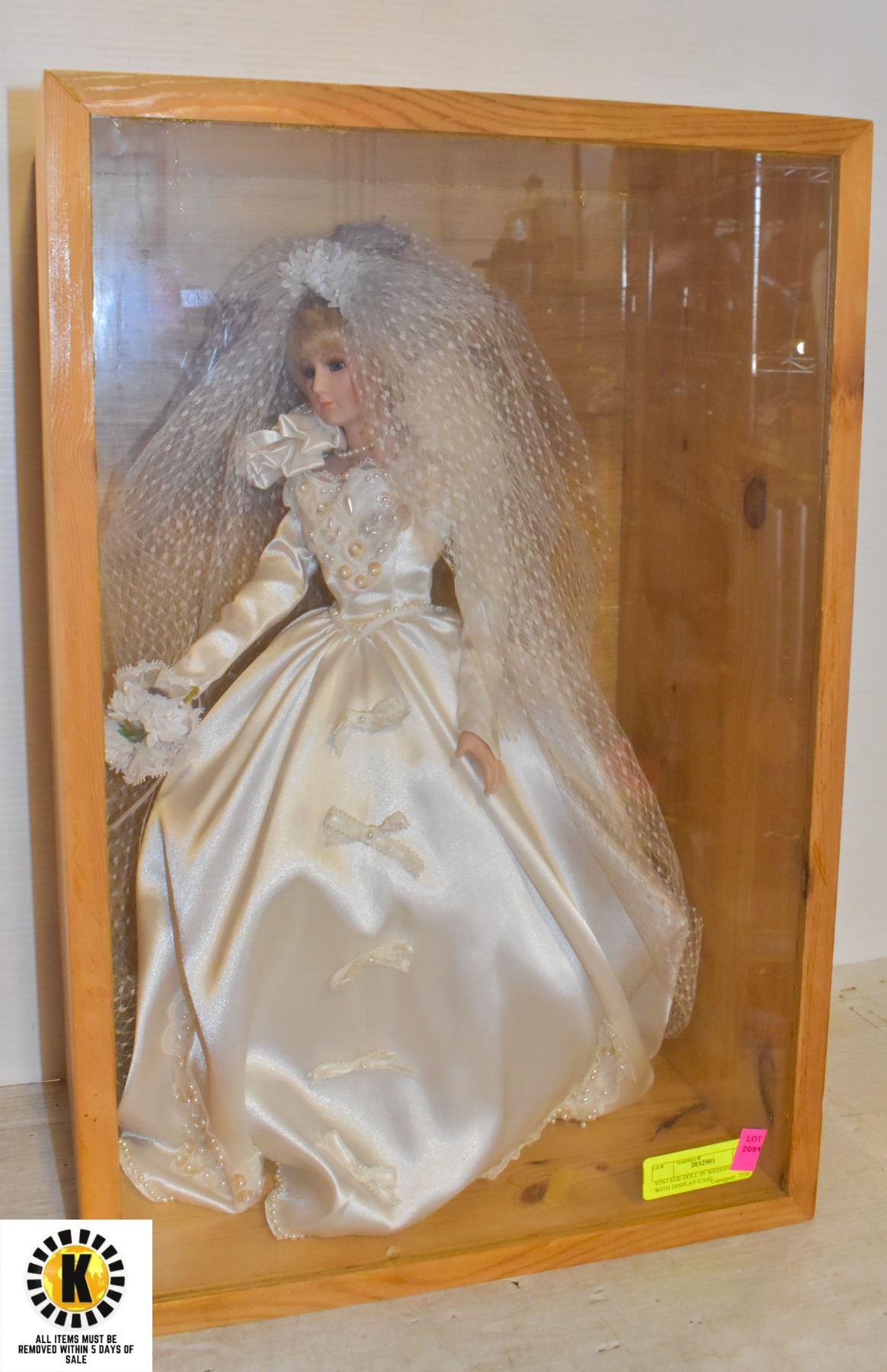 VINTAGE DOLL IN WEDDING DRESS WITH DISPLAY CASE