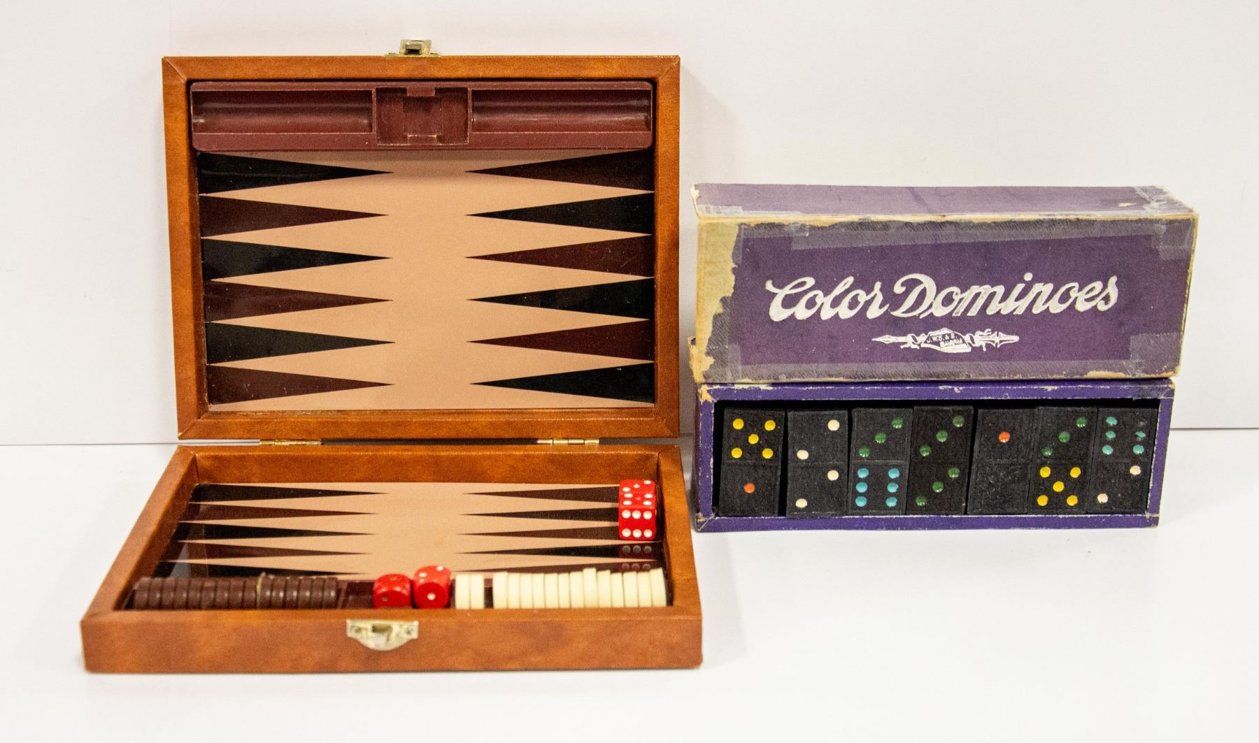 VINTAGE DOMINOS AND TRAVEL BACKGAMMON SET