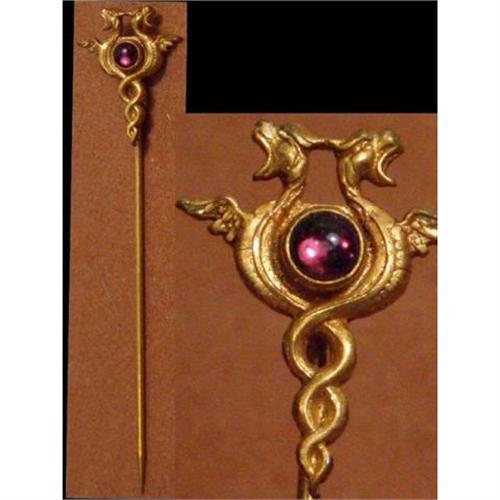 These two gothic Chinese dragons are protecting this amethyst center stone of this lovely Victorian stickpin. IT measures 3" long and is in great shape. If insurance is purchased it will be the only form of re-payment to you, should an item get lost or damaged.