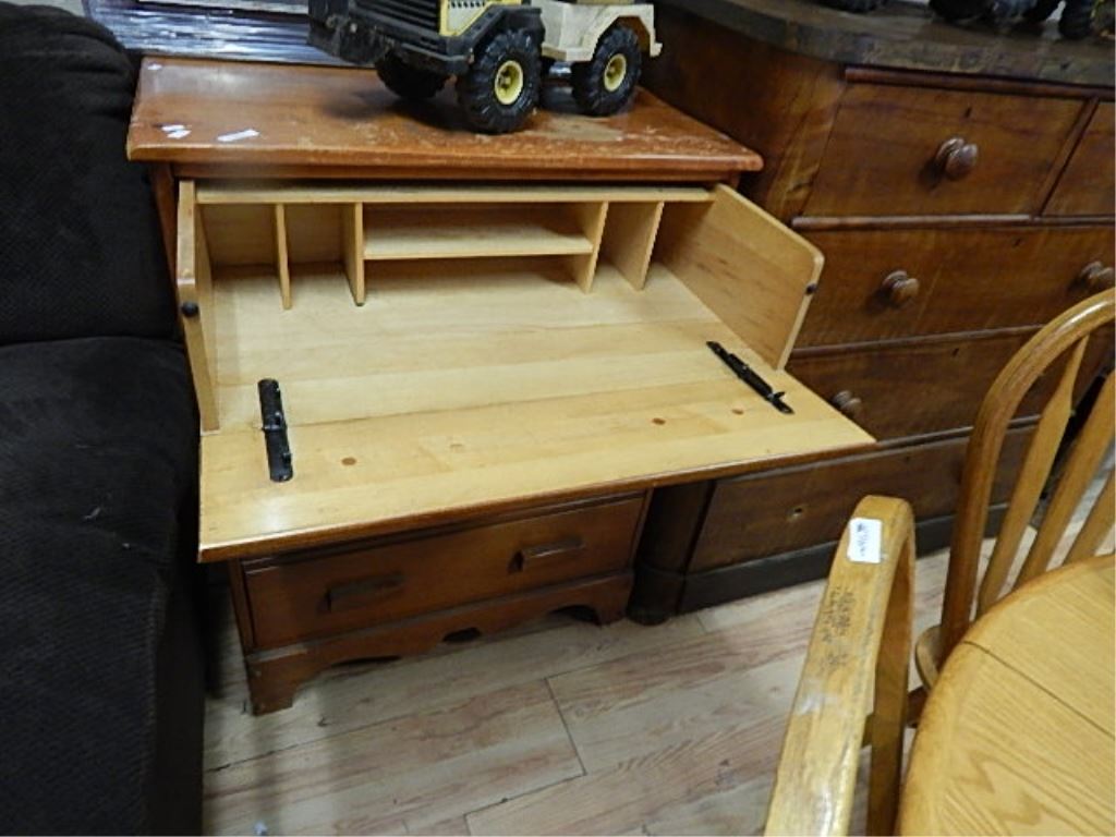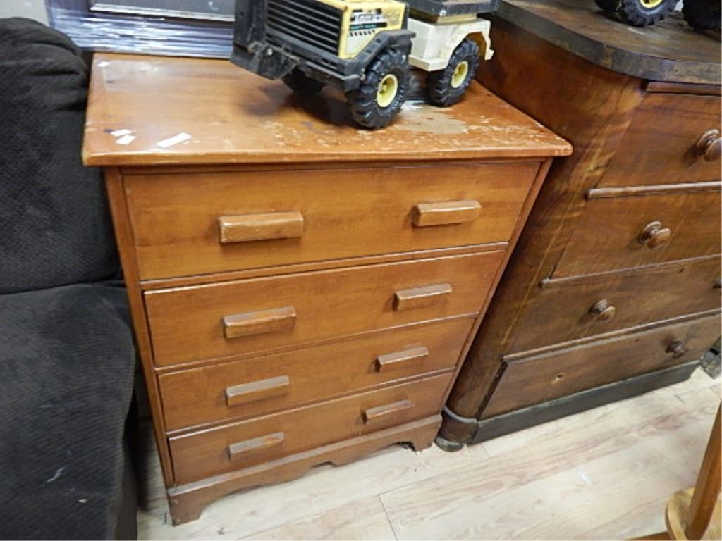 VINTAGE DRESSER - MAPLE - 4 DRAWER - TOP DRAWER IS NOT A DRAWER - OPENS DOWNWARD AND PULLS OUT TO MAKE A WRITING SURFACE / DESK