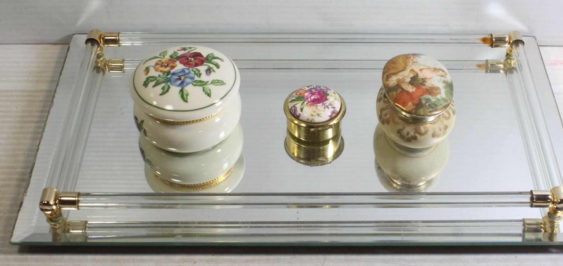 VINTAGE DRESSER MIRROR WITH 3 TRINKET BOXES
