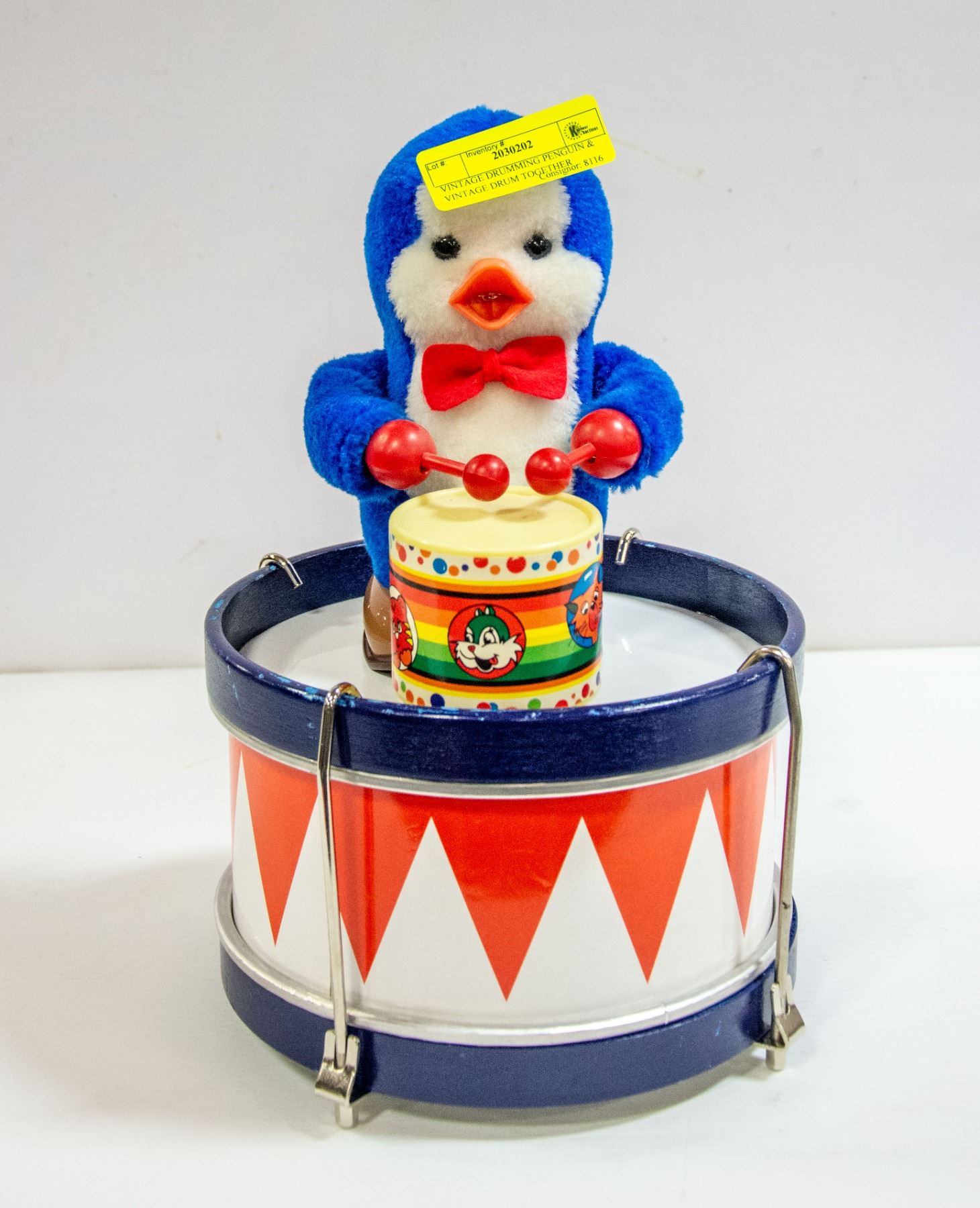 VINTAGE DRUMMING PENGUIN & VINTAGE DRUM TOGETHER