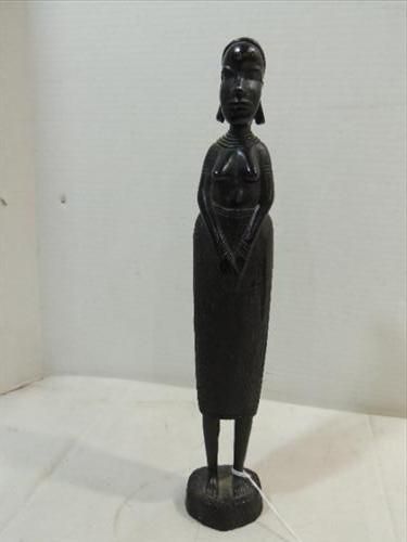 VINTAGE EBONY AFRICAN CARVED TRIBESWOMAN: MADE IN KENYA. 14"H. AS SHOWN. VIEW PICTURE FOR DETAIL.