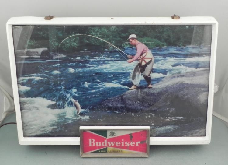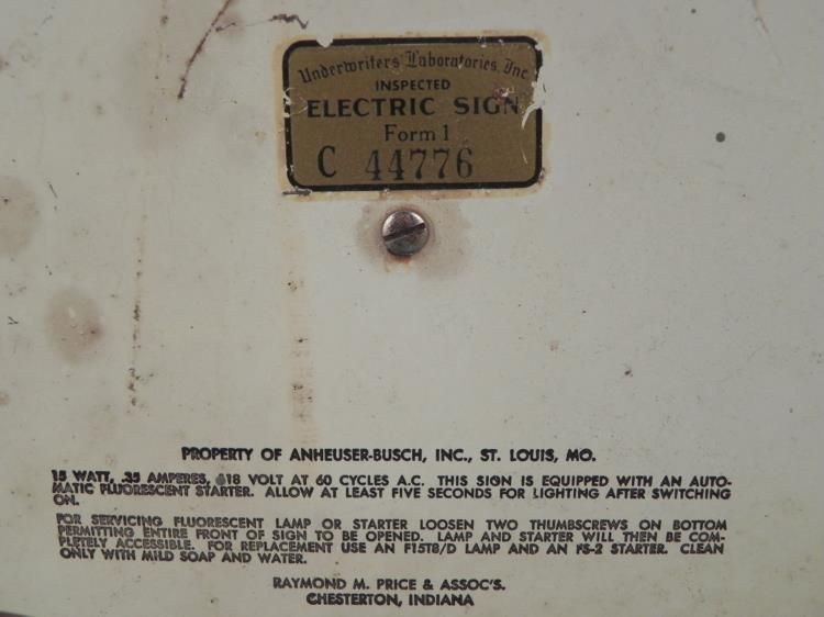 VINTAGE ELECTRIC BUDWEISER ILLUMINATED BAR SIGN * * MADE BY RAYMOND PRICE-CHESTERTON-20X12 1/2 X4 *