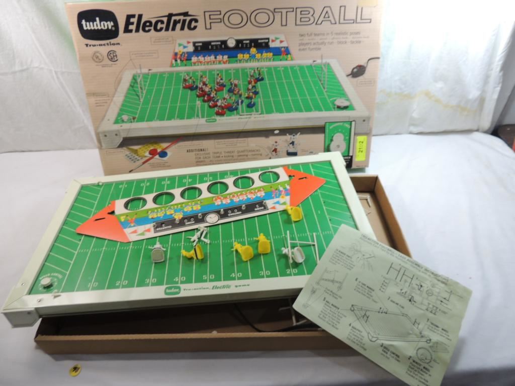 PLAN YOUR OWN OFFENSIVE & DEFENSIVE. TUDOR TRU ACTION ELECTRIC FOOTBALL GAME. TWO FULL TEAMS IN REALISTIC POSES. KICKING PASSING RUNNING QUARTERBACKS, EXCLUSIVE AUTOMATIC GAME TIMER, PAINT YOUR OWN TEAM COLORS AND NUMBERS. AS SHOWN SEE PHOTO FOR MORE DETAILS.