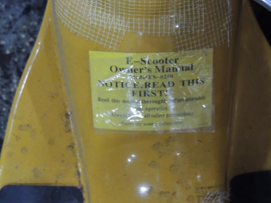 VINTAGE ELECTRIC SCOOTER. YELLOW SCOOTER KEY. ELECTRIC. GOOD CONDITION. AS SHOWN SEE PHOTO FOR MORE DETAILS.