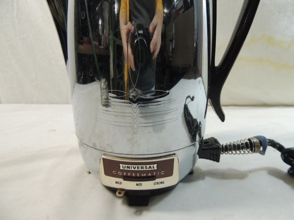 VINTAGE ELECTRIC UNIVERSAL COFFEE MAKER VINTAGE COFFEEMAKER AS SHOWN SEE PHOTO FOR MORE DETAILS.