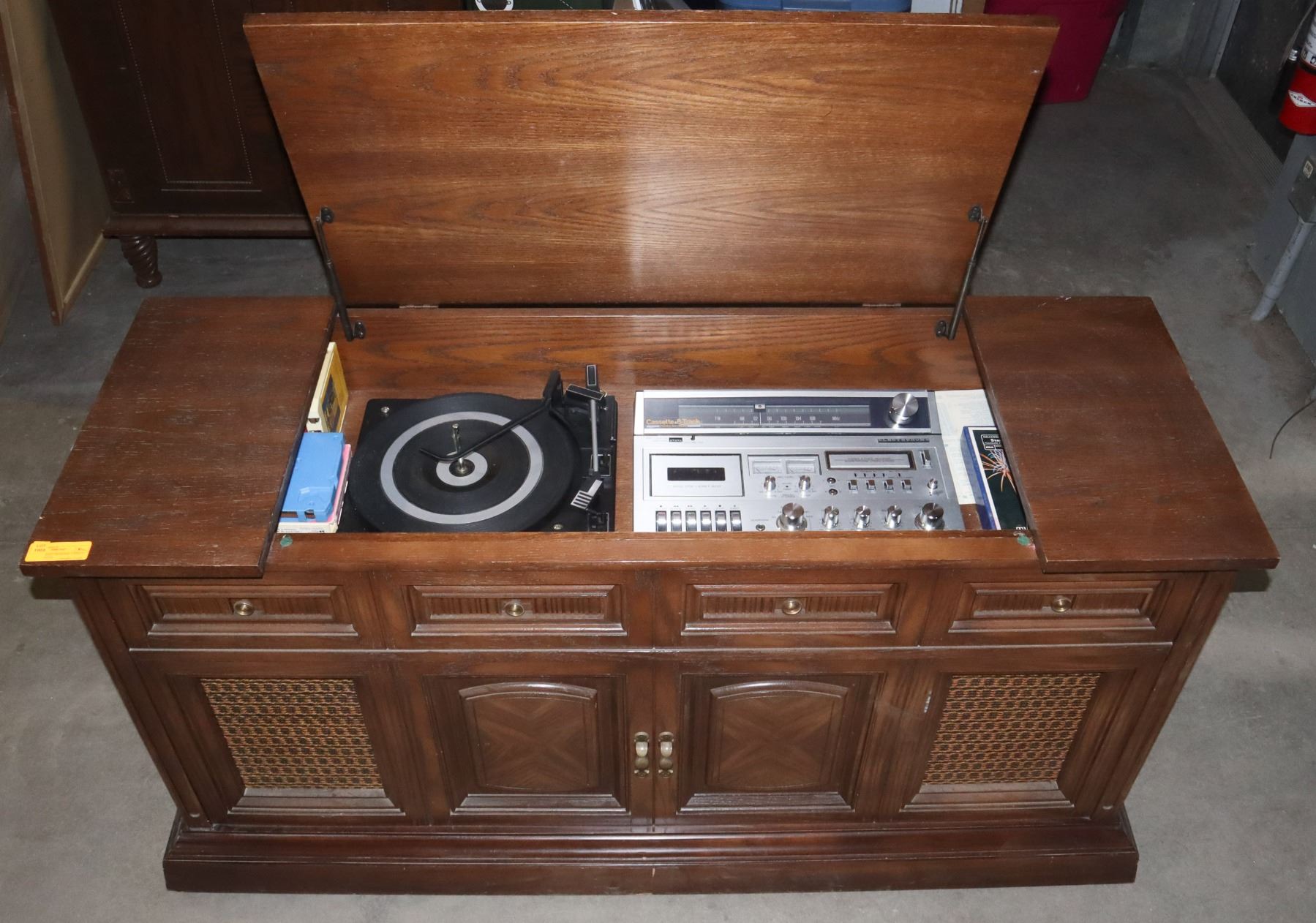 BUILT IN RECORD PLAYER, 8 TRACK PLAYER, CASSETTE TAPE PLAYER, SPEAKERS. ALSO INCLUDES SMALL 8 TRACK COLLECTION. POWERS ON, SPEAKER VOLUME DOES NOT WORK, RADIO DOES WORK, NO OTHER FUNCTIONS TESTED**MAJOR PROCEEDS FOR SALE OF THIS LOT ARE FOR SOUTHERN ALBERTA CHARITY*** LOCAL PICKUP ONLY OR WE CAN WORK WITH A CARRIER YOU ARRANGE***