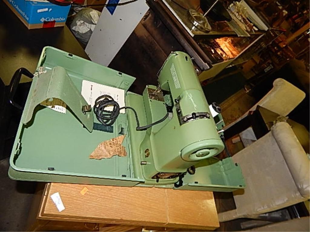VINTAGE ELNA SEWING MACHINE - WITH ORIGINAL METAL TRAVEL CASE AND PAPERS