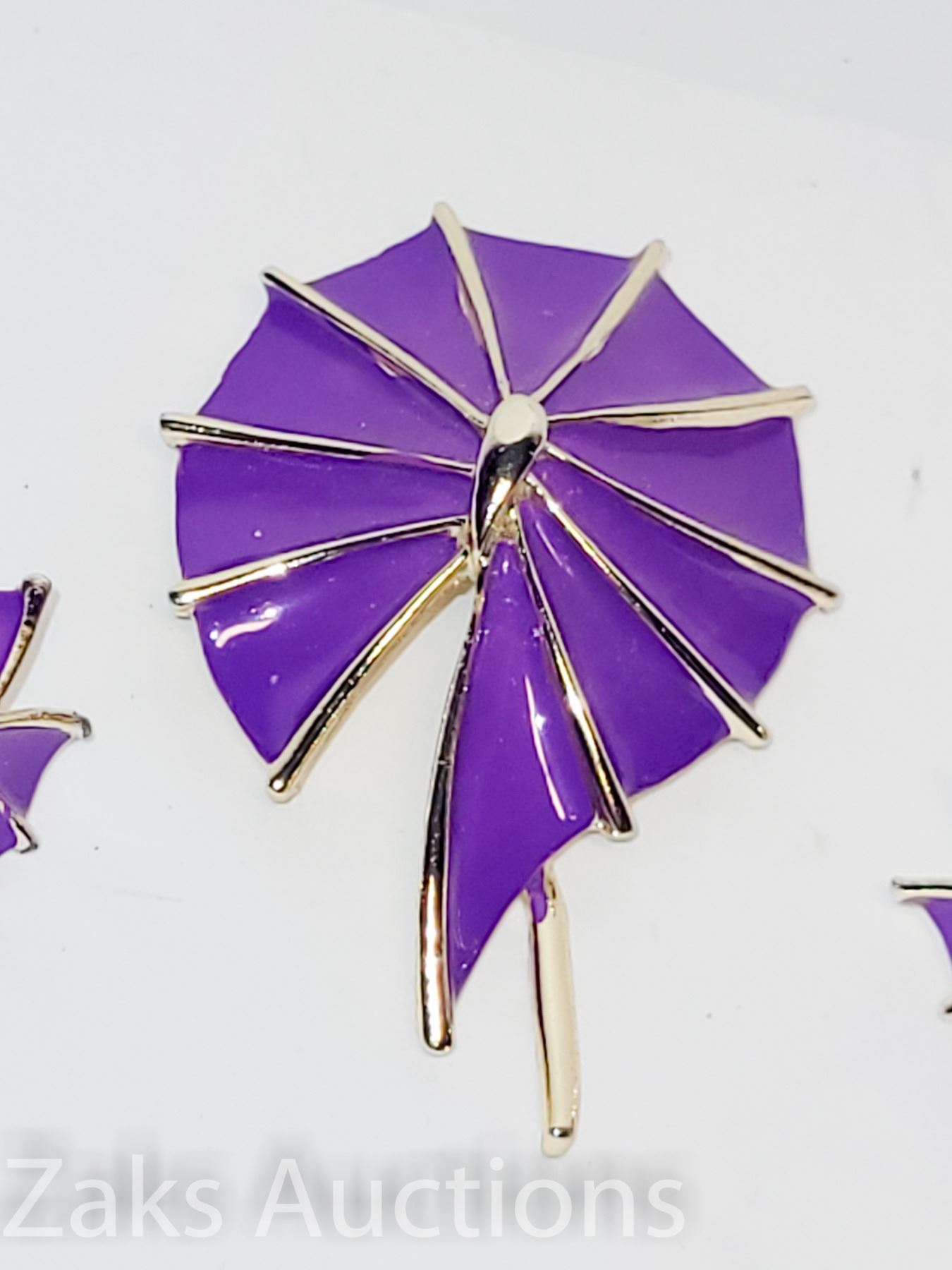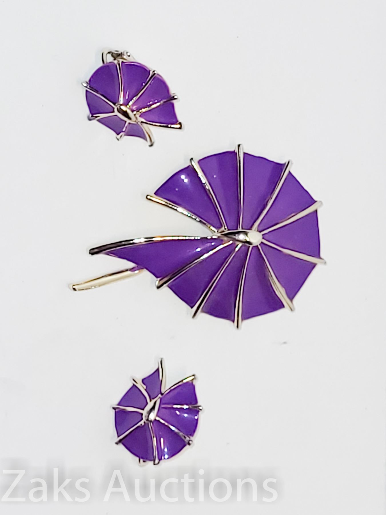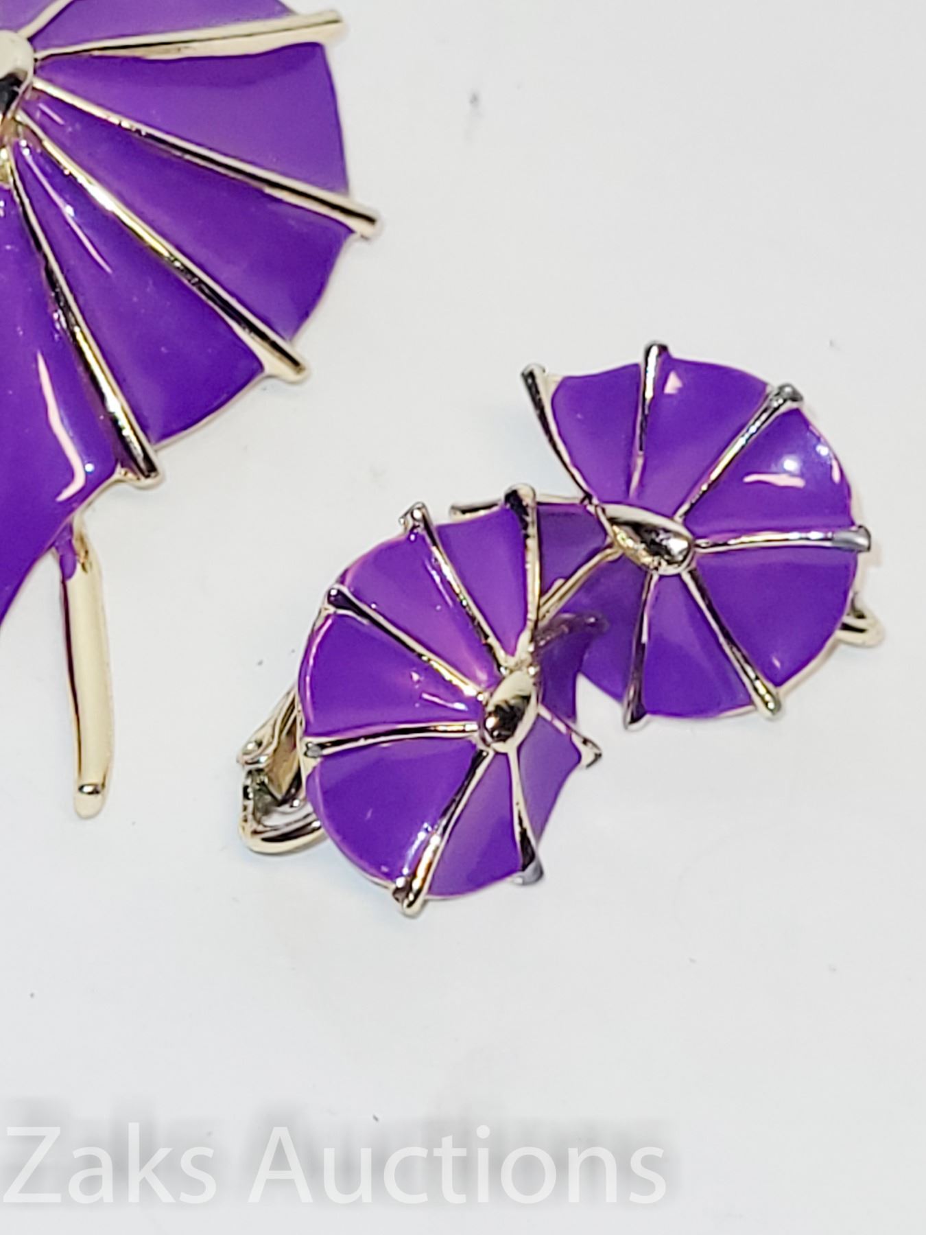 ROYAL DEEP PURPLE. NO CHIPS OR FADING ON THE ENAMEL. EARRING ARE CLIP ONS.