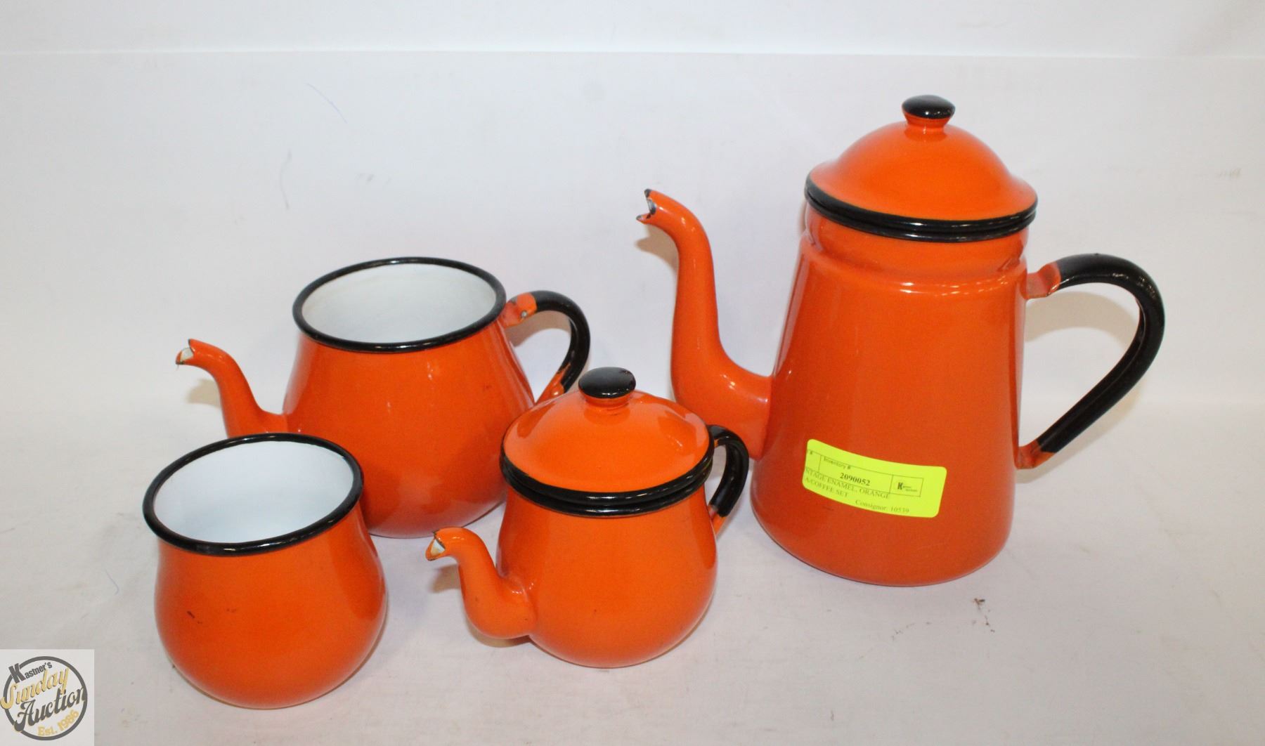 VINTAGE ENAMEL, ORANGE TEA/COFFEE SET