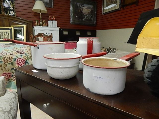 VINTAGE ENAMEL POT SET - RED & WHITE - 4 PC