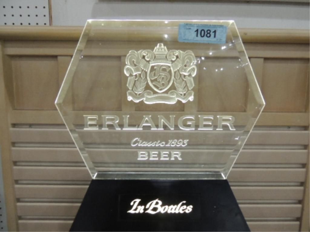 SCHLITZ BEER SIGN LIGHTED BAR SIGN OLD ERLANGER BRAND UP LIGHT BOTTLE PUB ERLANGER BEER CLEAR TABLE TOP LIGHT SIGN. AS SHOWN. SEE PHOTO FOR MORE DETAILS.