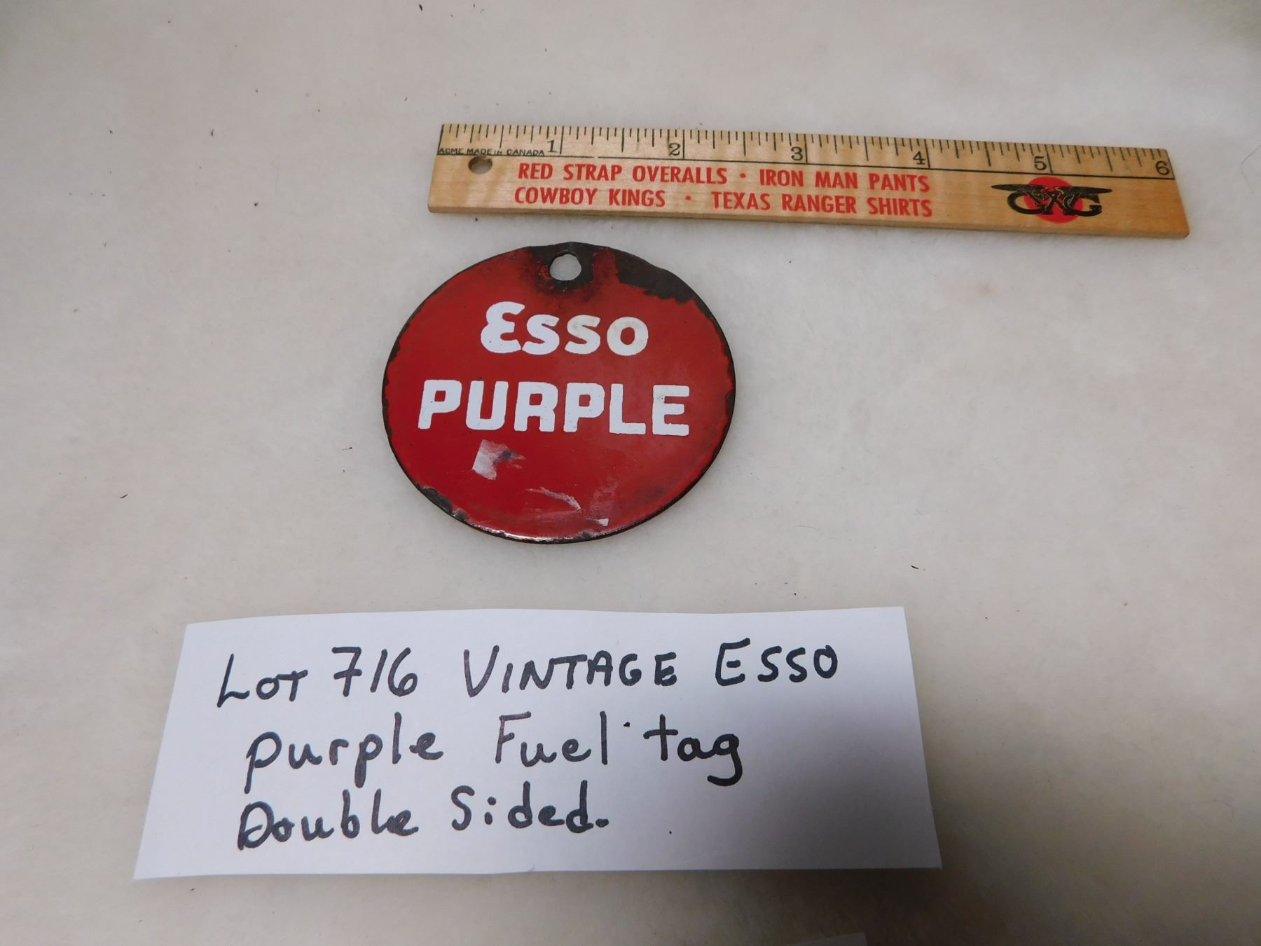 VINTAGE ESSO PURPLE GAS FUEL TAG DOUBLE SIDED