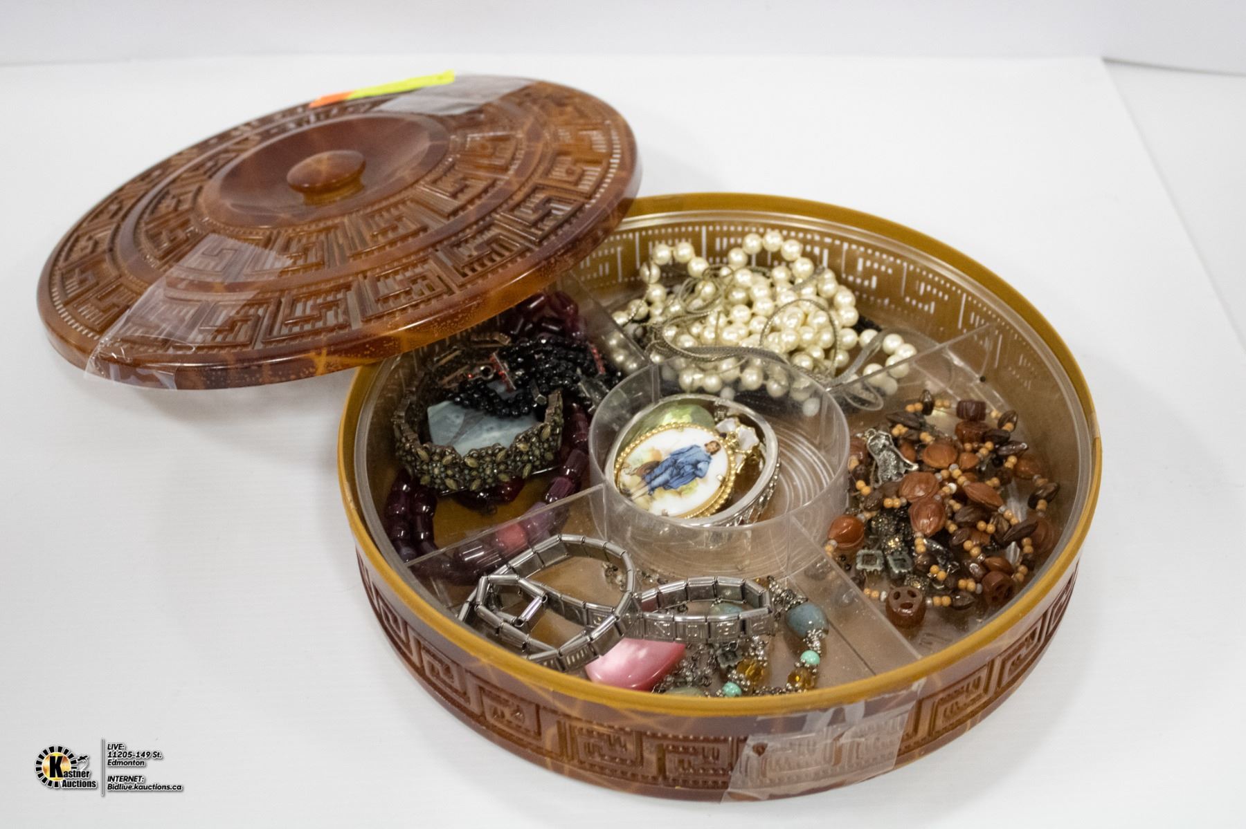 VINTAGE ESTATE BAKELITE JEWELRY BOX WITH CONTENTS