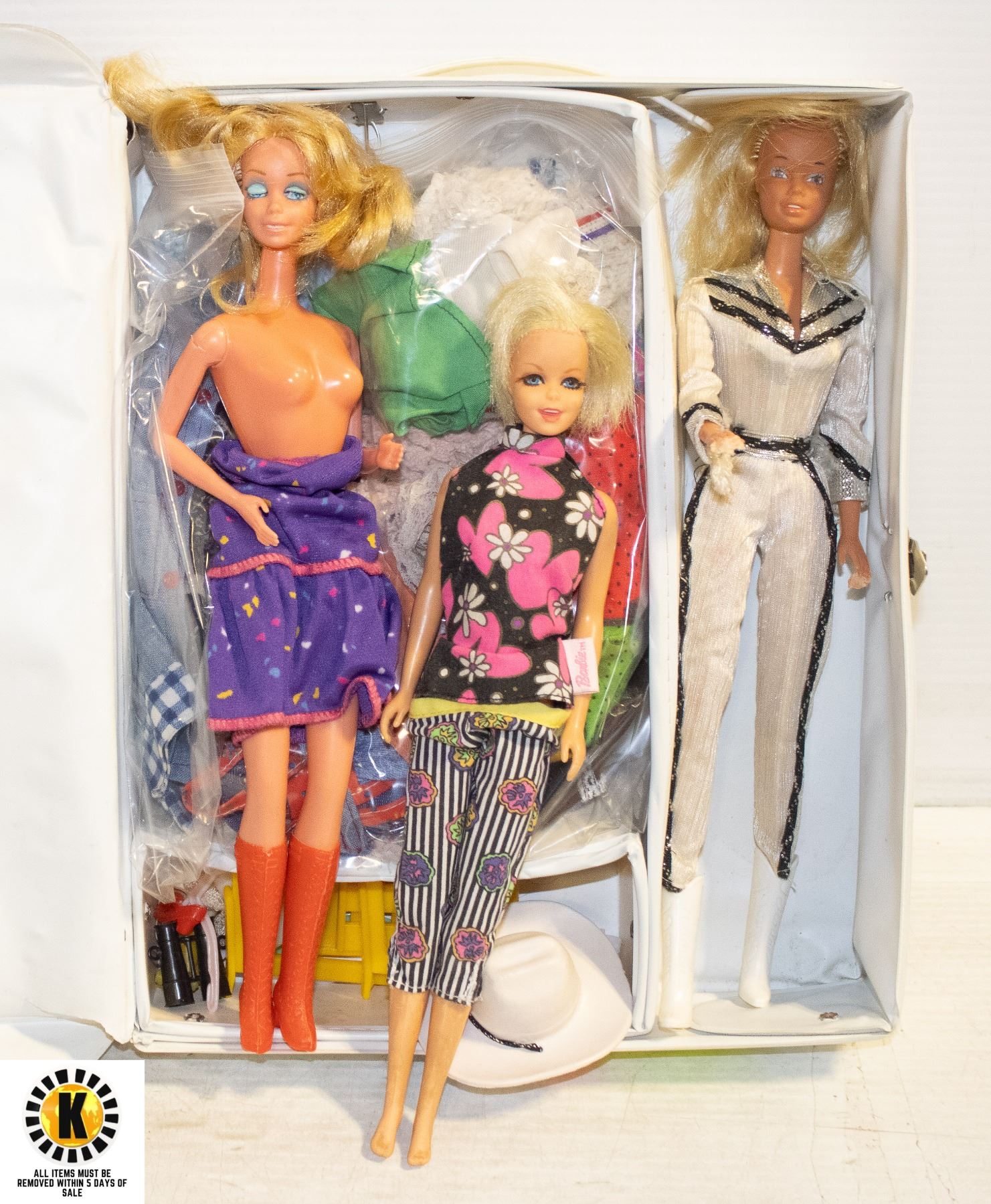 VINTAGE ESTATE BARBIES WITH CASE AND CLOTHES