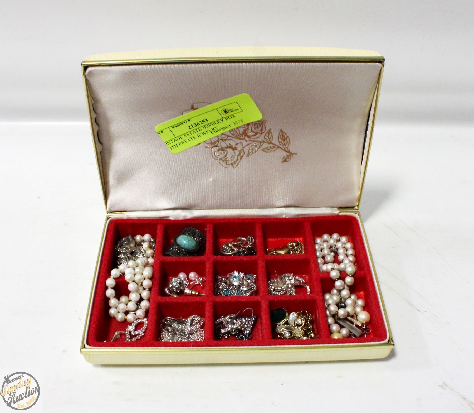 VINTAGE ESTATE JEWELRY BOX WITH ESTATE JEWELRY