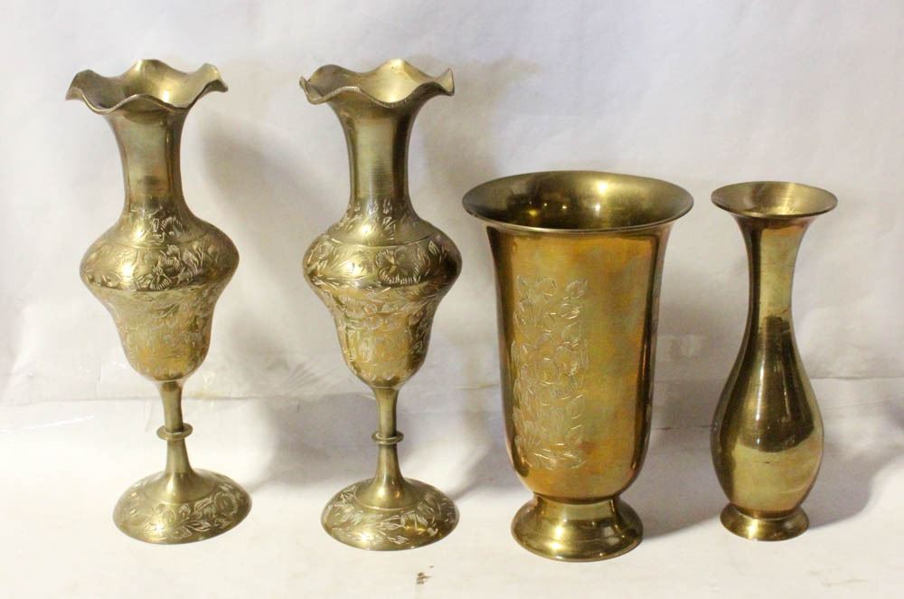 VINTAGE ETCHED BRASS VASES BOHO FLORAL