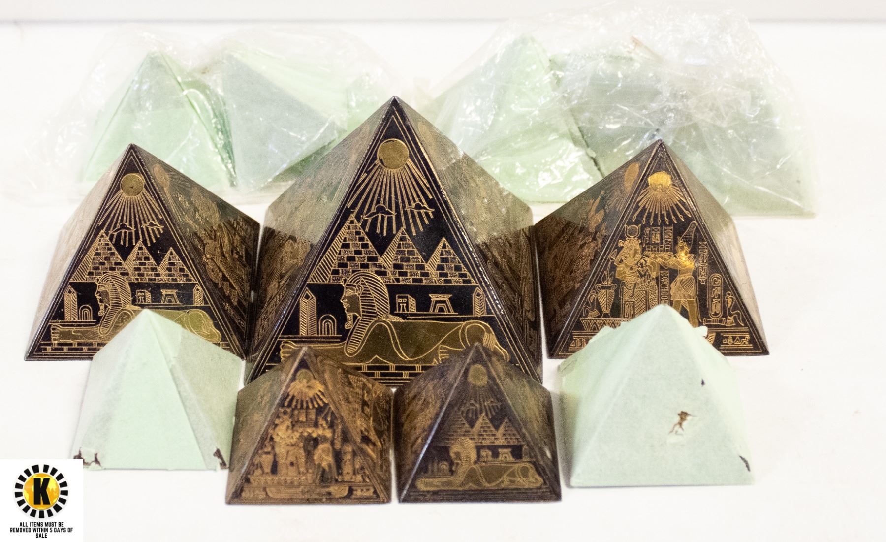 VINTAGE ETCHED EGYPTIAN PYRAMID METAL PAPERWEIGHT