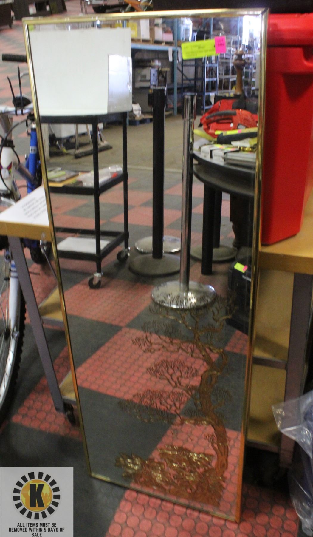 VINTAGE ETCHED TREE MIRROR 18X48 INCH