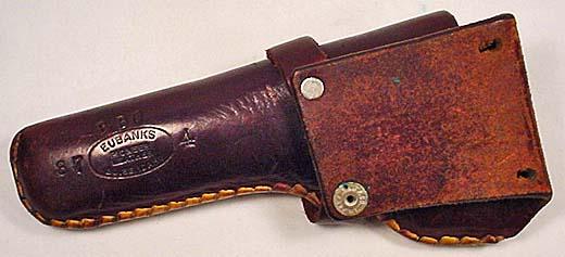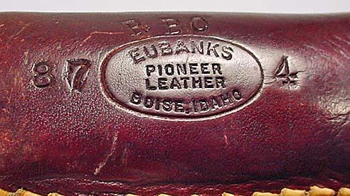 VINTAGE EUBANKS PIONEER LEATHER GUN HOLSTER - BASKET WEAVE TOOLED LEATHER - Marked RBC 87 4 Eubanks Pioneer Leather Boise Idaho.