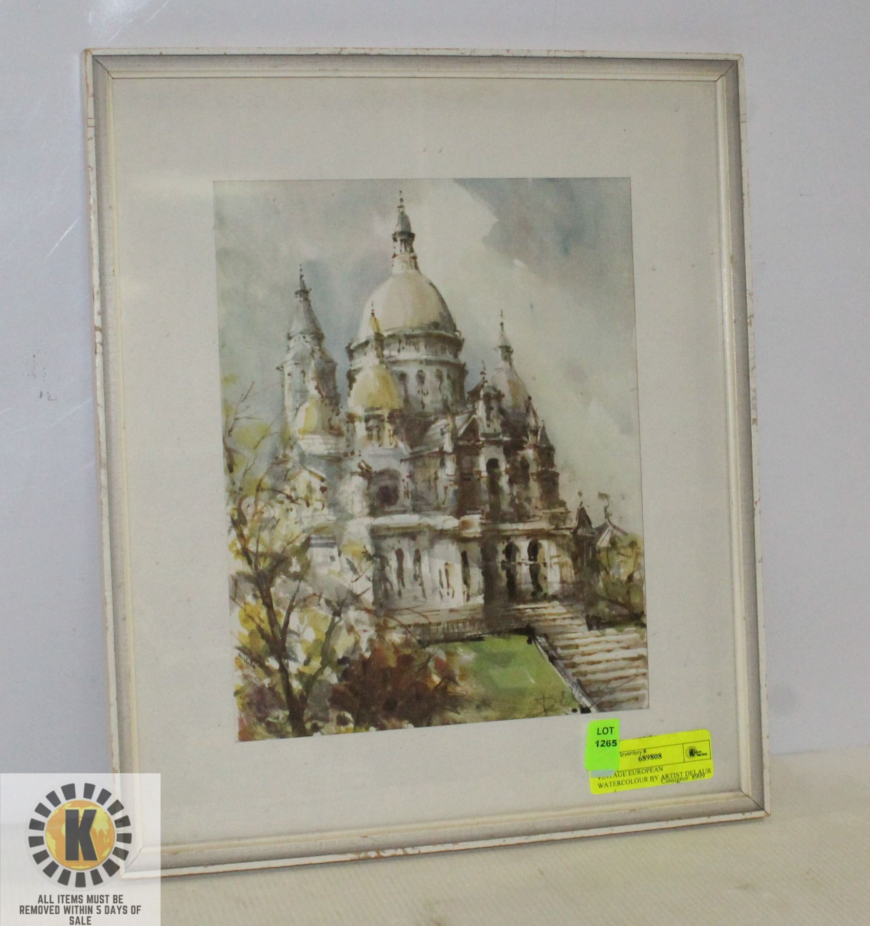 EUROPEAN CATHEDRAL WATER COLOUR BY ARTIST DELAUR 15" X 13"**ALL ITEMS MUST BE REMOVED BY 5PM FRIDAY, AUGUST 5TH, 2022. ALL REMAINING ITEMS WILL BE SUBJECT TO A $6.00 PER DAY STORAGE CHARGE. ANY ITEMS REMAINING AFTER FRIDAY, AUGUST 19, 2022 WILL BE CONSIDERED FORFEITED. NO REFUNDS WILL BE ISSUED FOR FORFEITED ITEMS.** TO SCHEDULE A PICK UP APPOINTMENT CLICK HERE