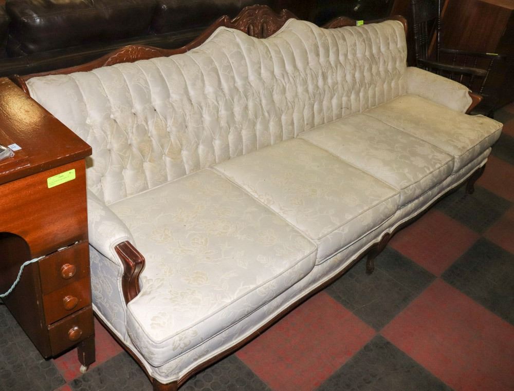VINTAGE FABRIC AND WOOD CARVED COUCH