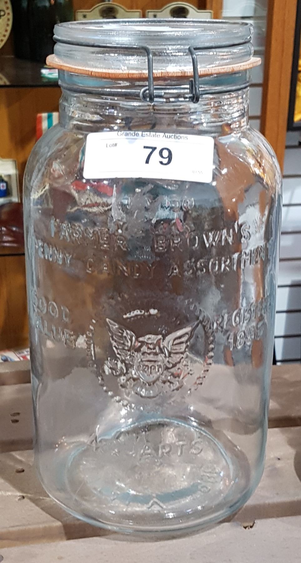 VINTAGE FARMER BROWN'S PENNY CANDY ASSORTMENT GENERAL STORE JAR