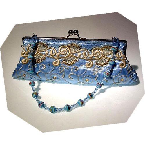 VINTAGE ELLEGANCE ! Very Finely Embroidered Silk Evening Bag. Intricate Sequined Patterns. Beaded Stylized Design. QUALITY CRAFTED with Silver Chain Link Accessory. IMMEDIATE DELIVERY! PRICE INCLUDES SHIPPING. Most Beautiful and Soft. Very Lovely Lt. Blue with Gold * GO-4 ANDARE FASHIONS ITALIA * U.S. Sales Only ( No Exceptions )