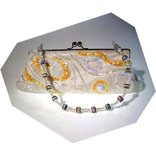 VINTAGE FASHION ! EVENING BAG. Stunning White Silk Fashion Bag. Very Fine Intricately Sewn Sequin Beaded Design. Quality Crafted. SHOW FLASH PRESENCE ACCESSORY ! MAGNIFICENT COLORS For MATCH EVENING WEAR. Immediate Delivery * ANDARE FASHIONS ITALIA ..... All Accessories Included As Shown. U.S. Sales Only ( No Exceptions ) NO CHARGE SHIPPING