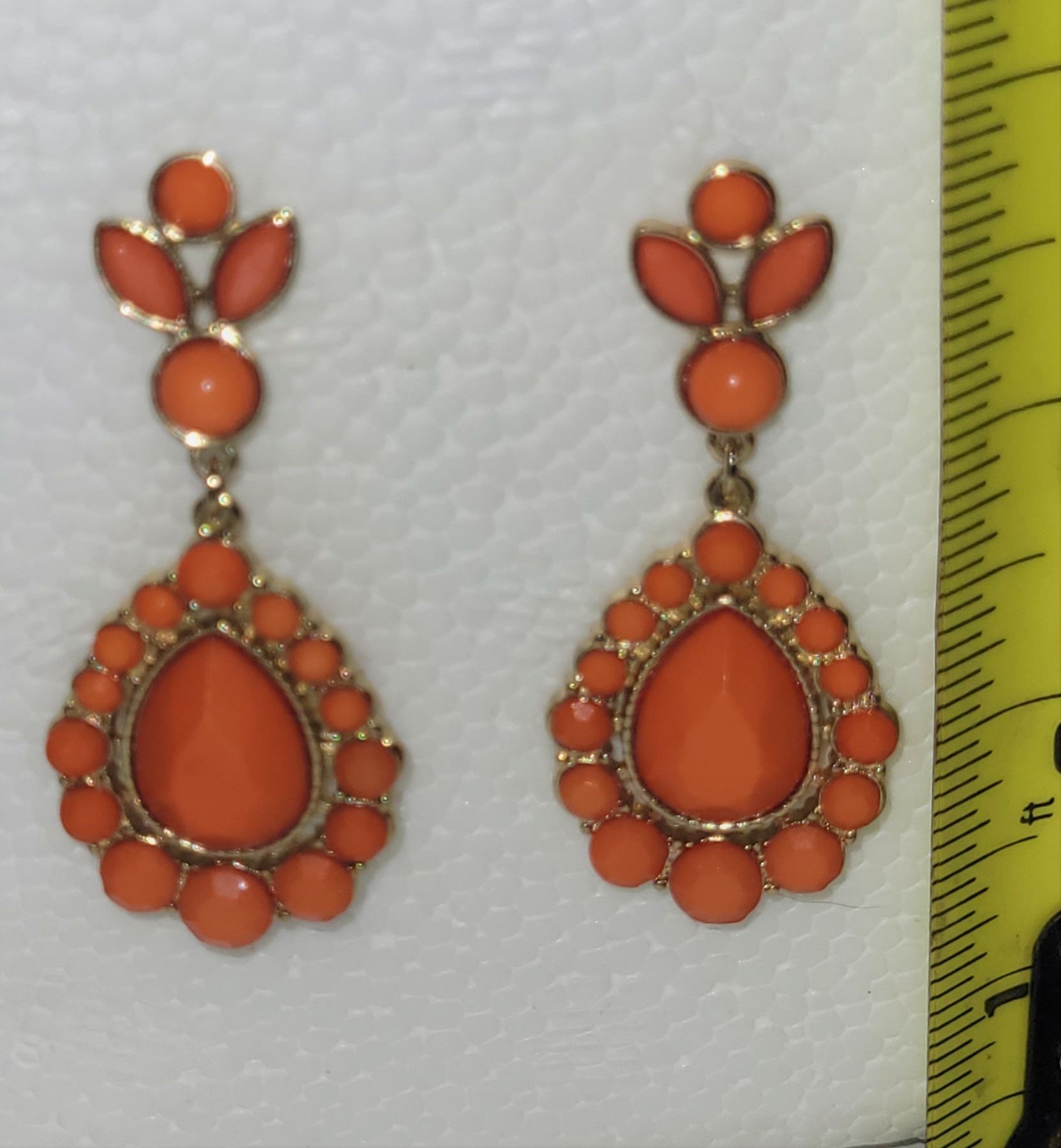 VINTAGE FAUX CORAL TEAR DROP EARRINGS. POST BACK. FROM ESTATE. SEE PICTURES AND JUDGE FOR YOURSELF!
