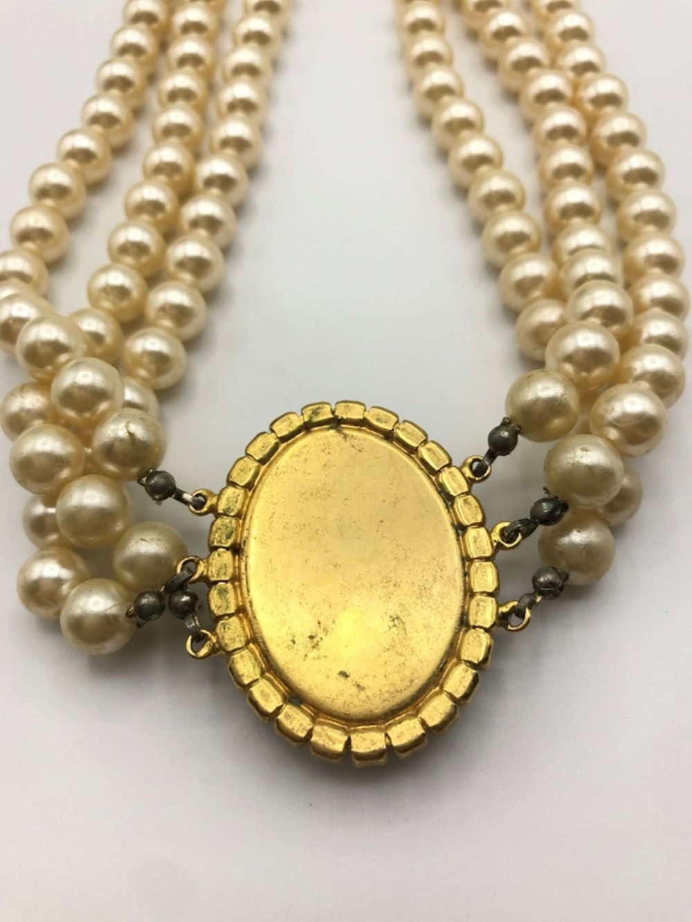 LARGE PENDANT WITH RHINESTONES PLUS BONUS LAYERED FAUX PEARL BRACELET WITH LARGE PENDANT WITH RHINESTONES!!