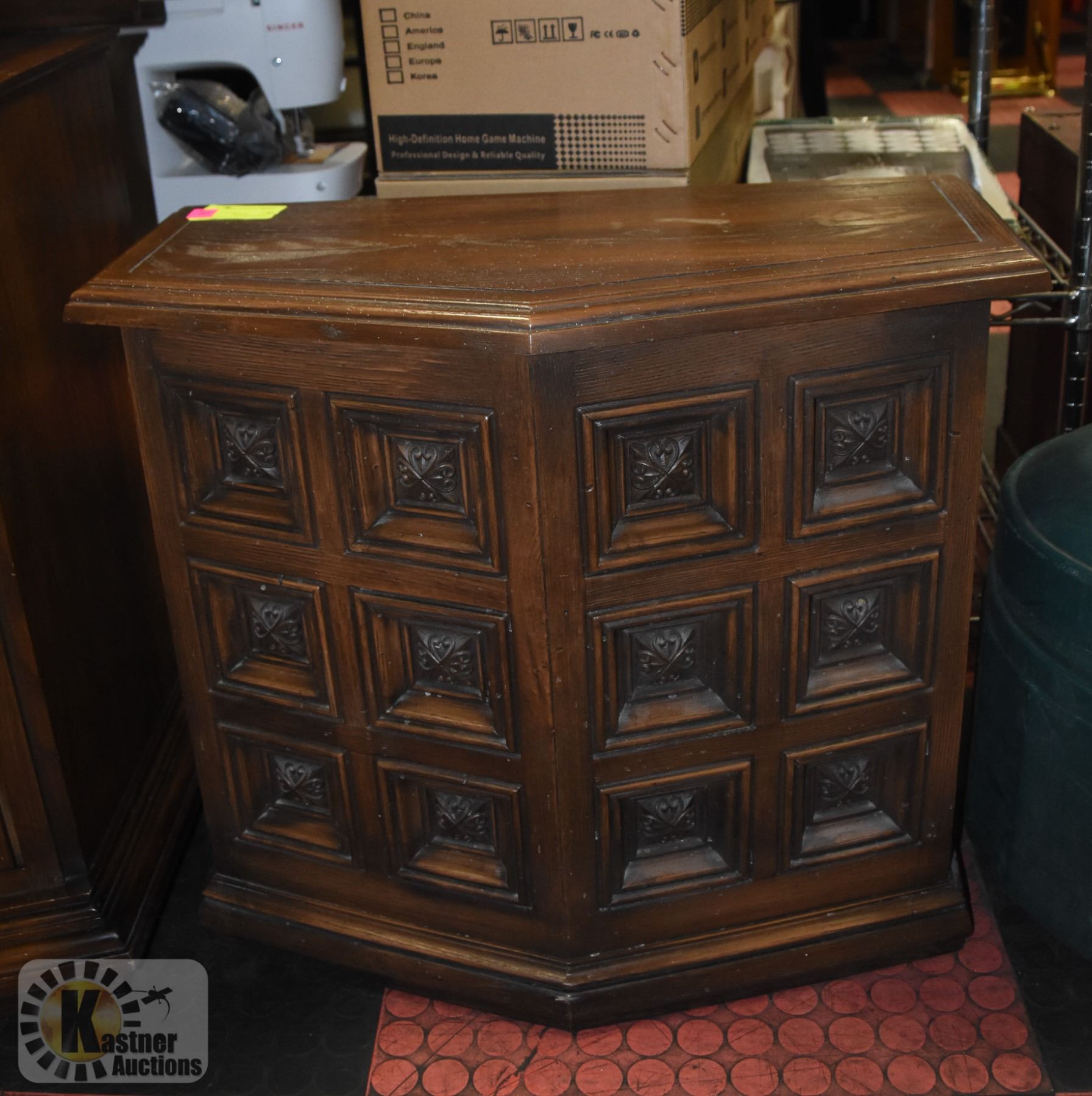 VINTAGE FAUX WOOD HAMPER 25X12X22