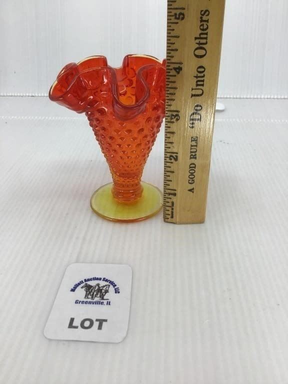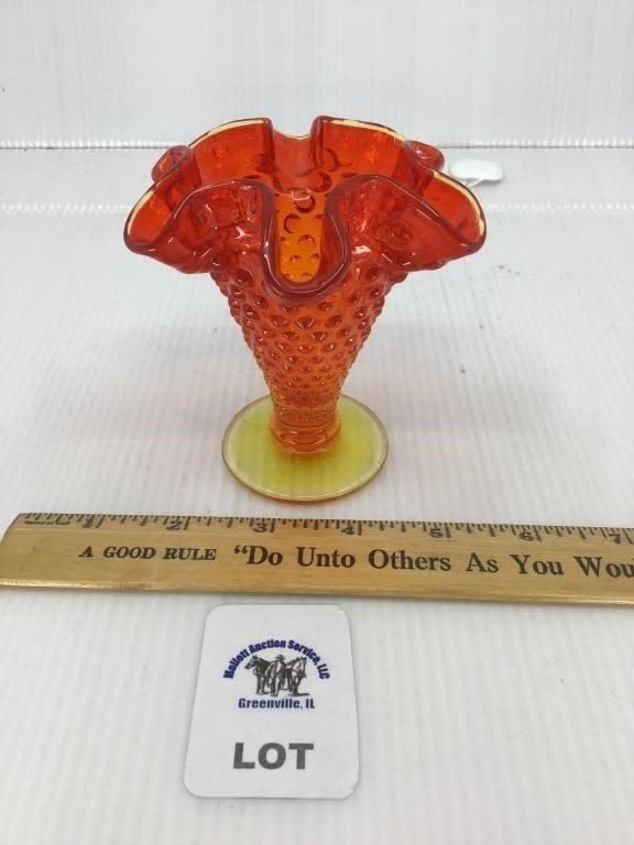 VINTAGE FENTON AMBERINA HOBNAIL ART VASE