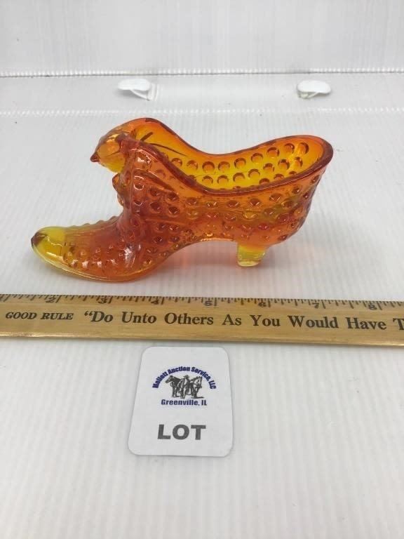 VINTAGE FENTON HOBNAIL AMBERINA GLASS SLIPPER