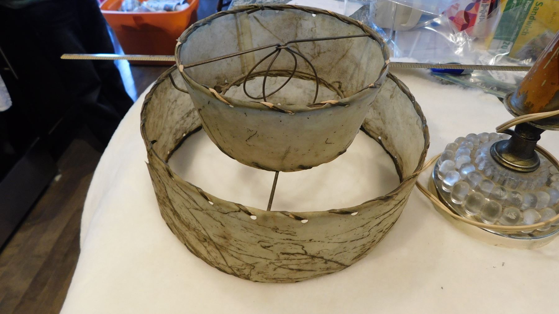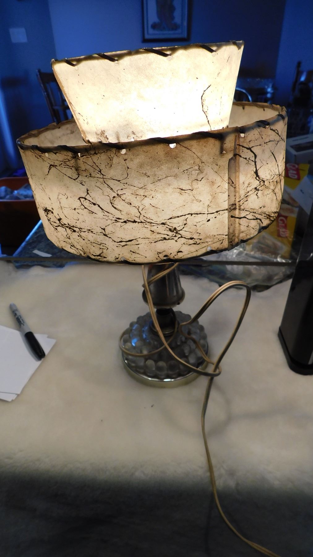 VINTAGE FIBREGLASS TWO TIER SHADE, WITH WORKING LAMP