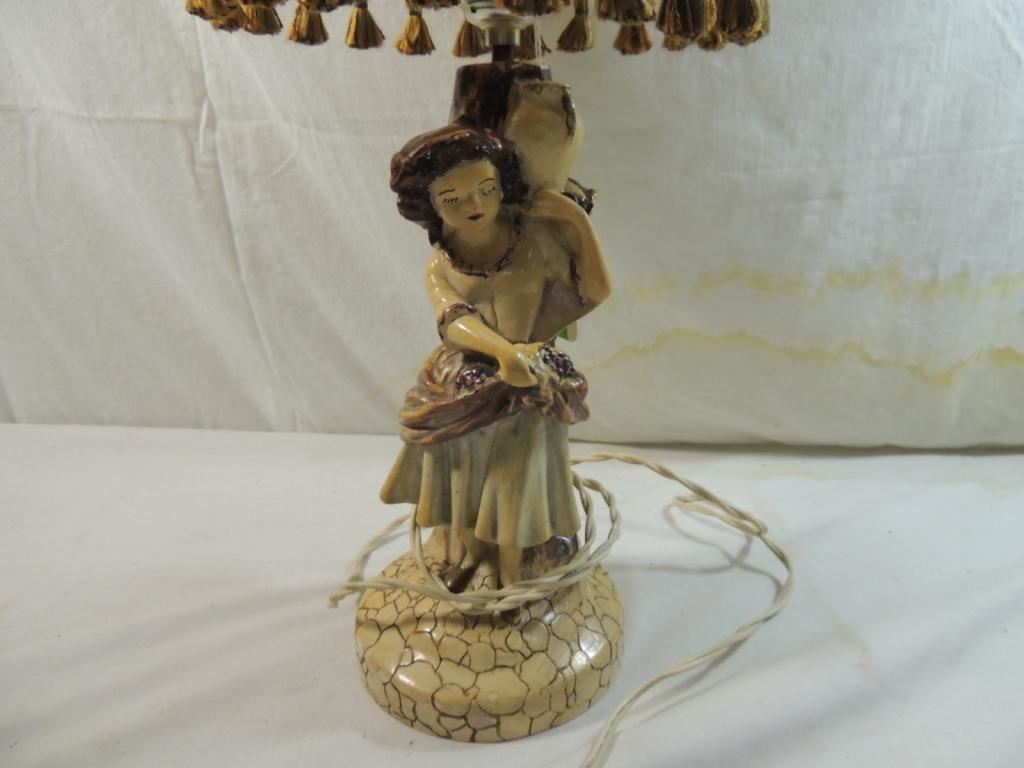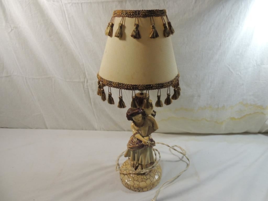 VINTAGE FIGURINE LAMP DECORATIVE AS SHOWN SEE PHOTO FOR MORE DETAILS.