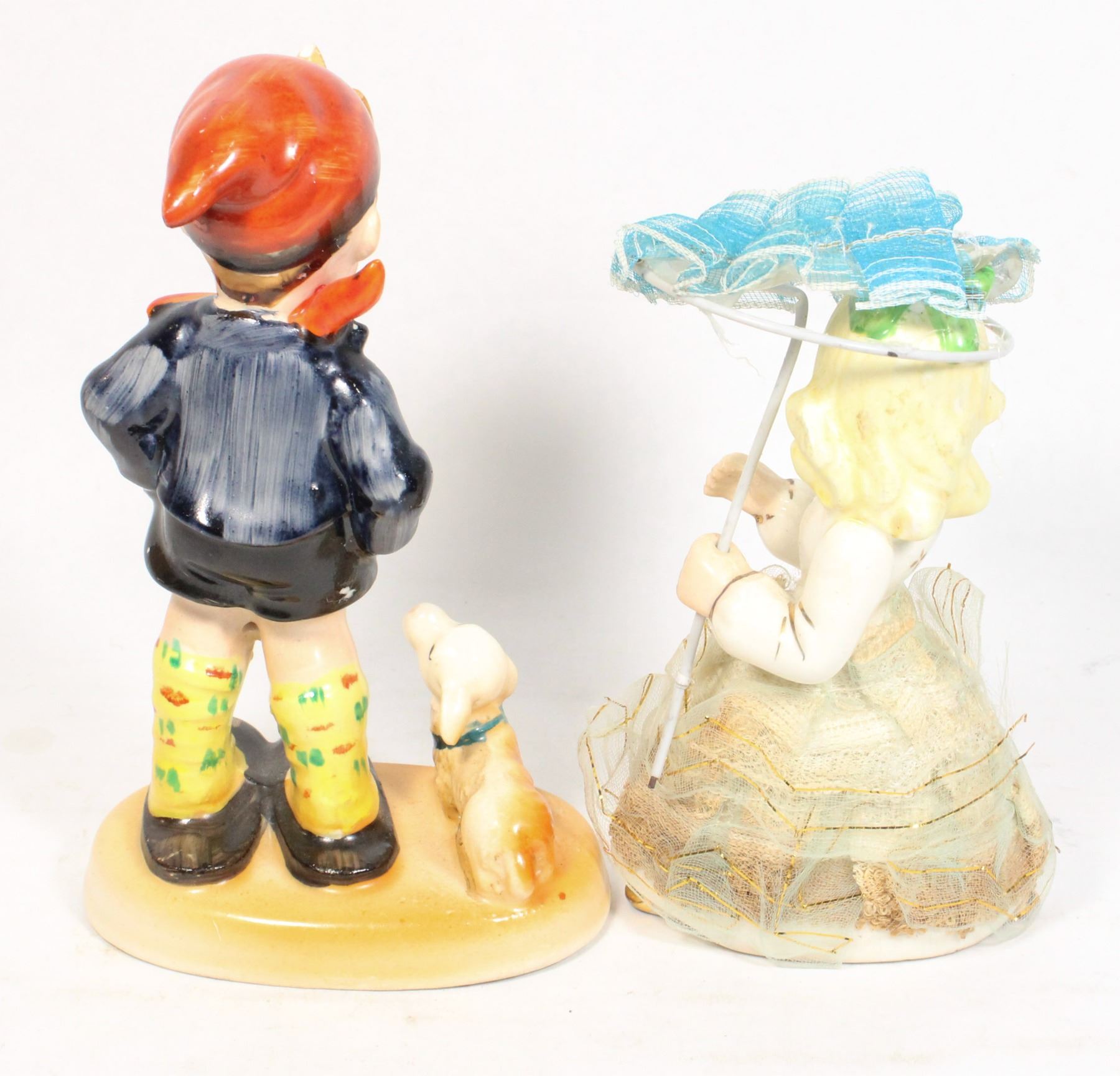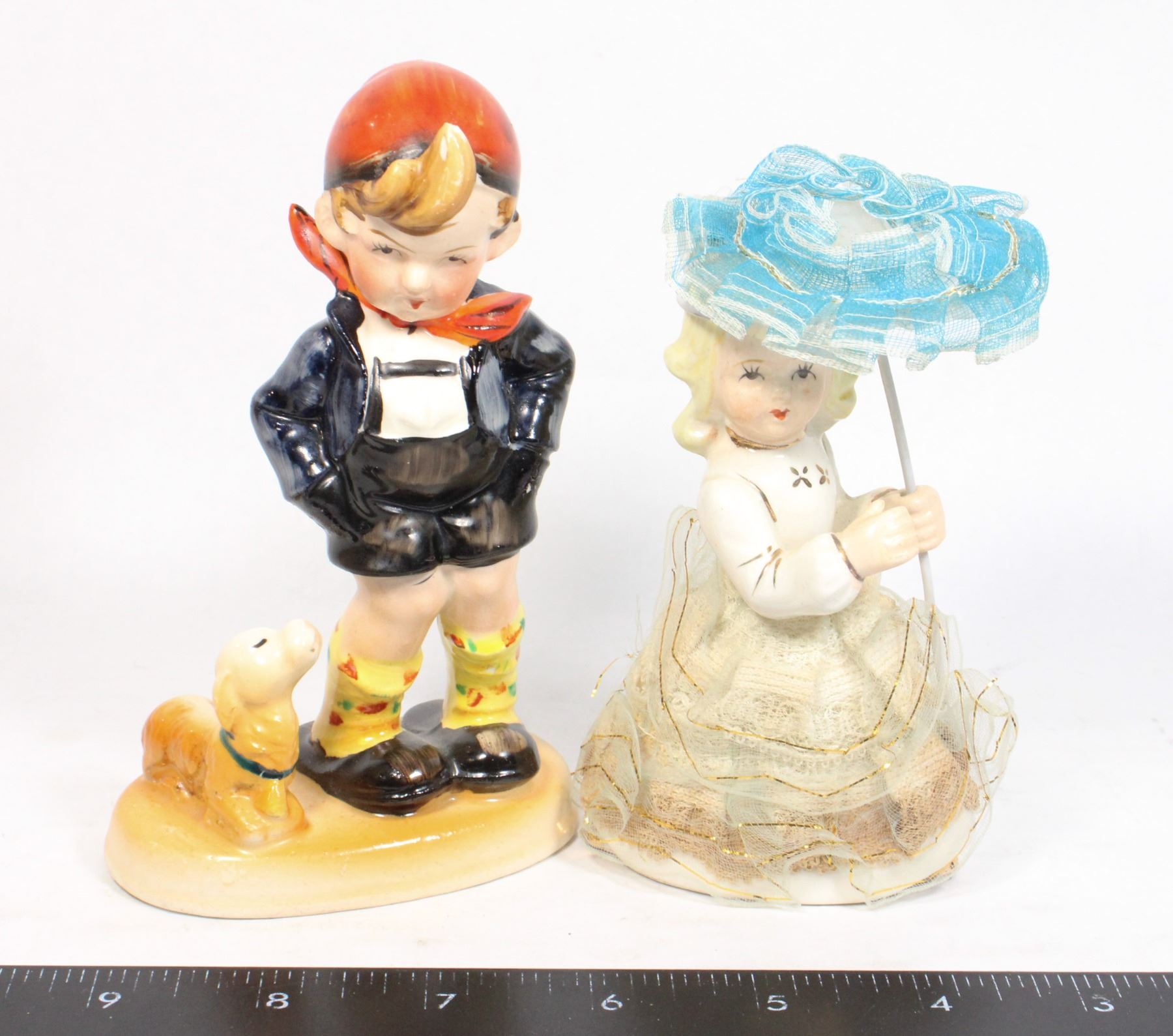 VINTAGE FIGURINES BOY WITH DOG, 14X9CM.