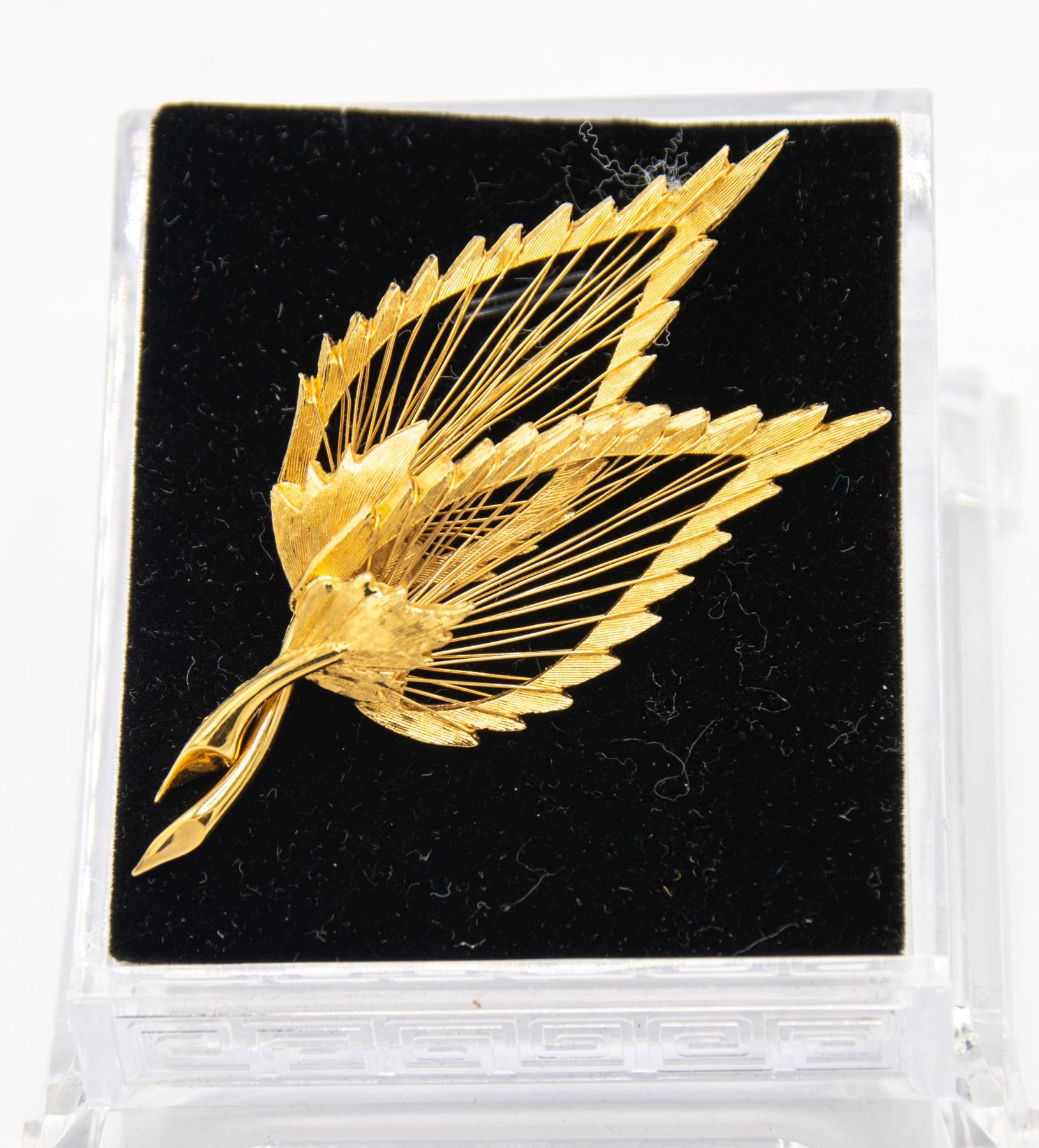 VINTAGE FINE GOLD TONE LEAF BROOCH