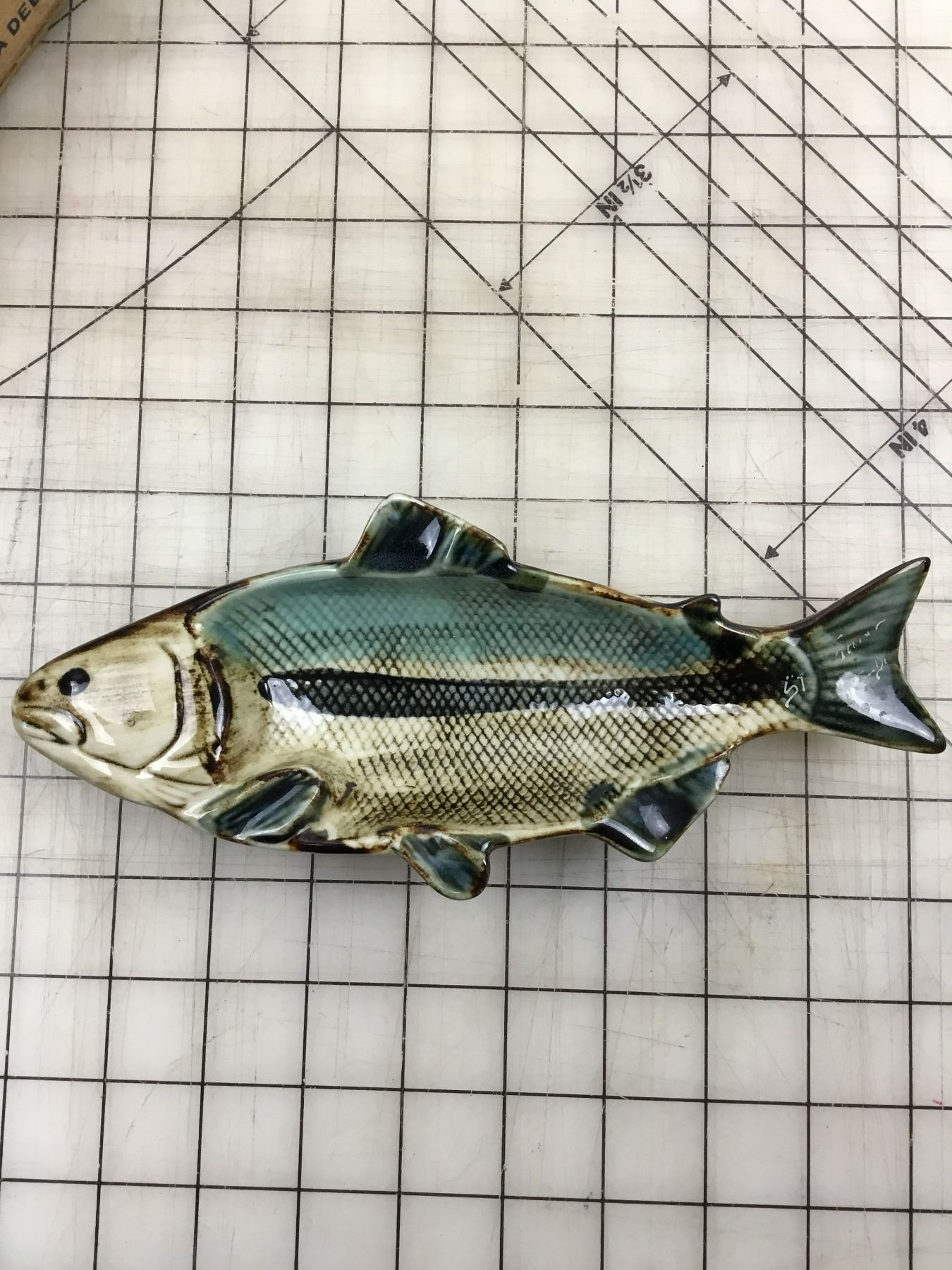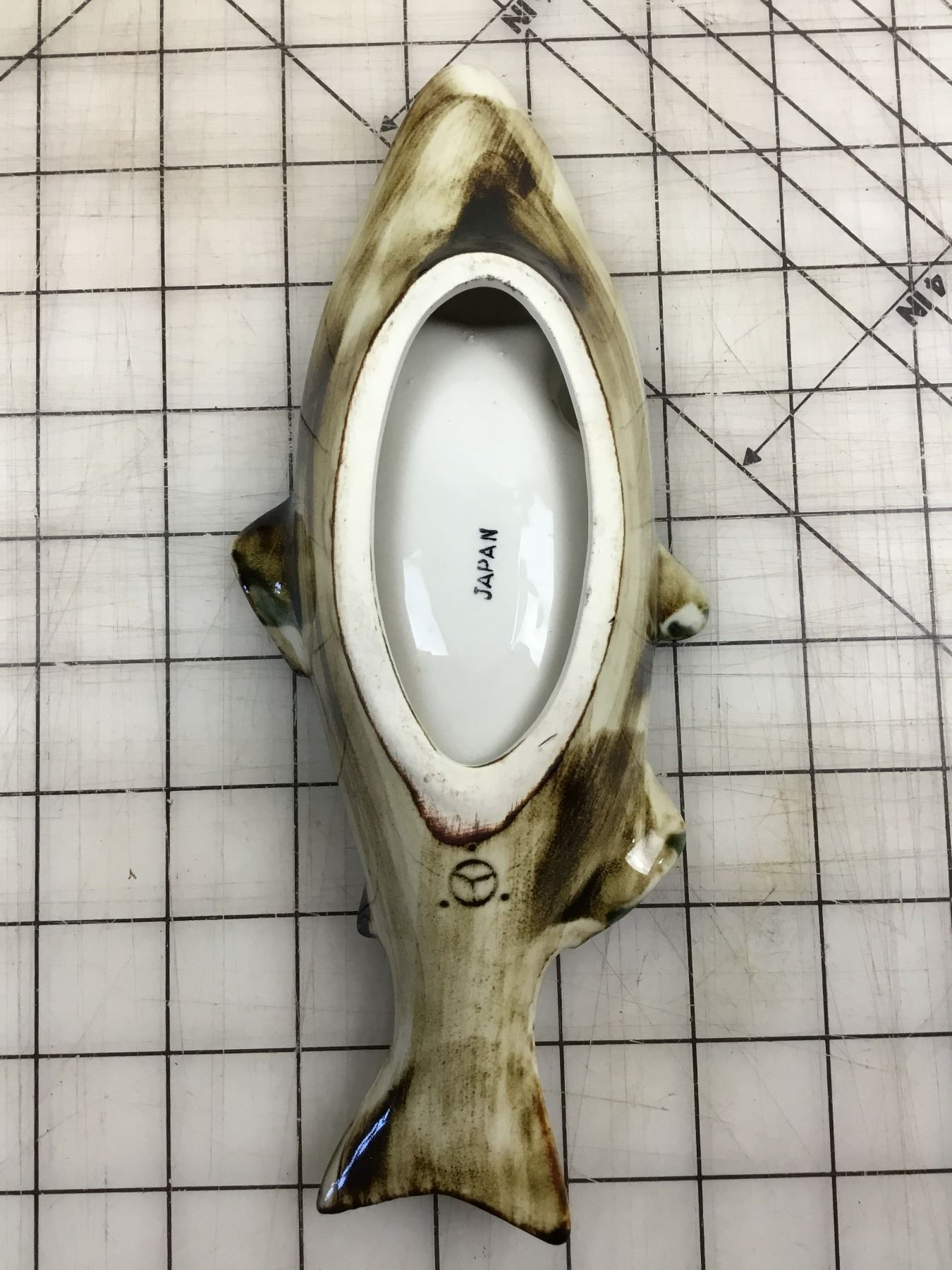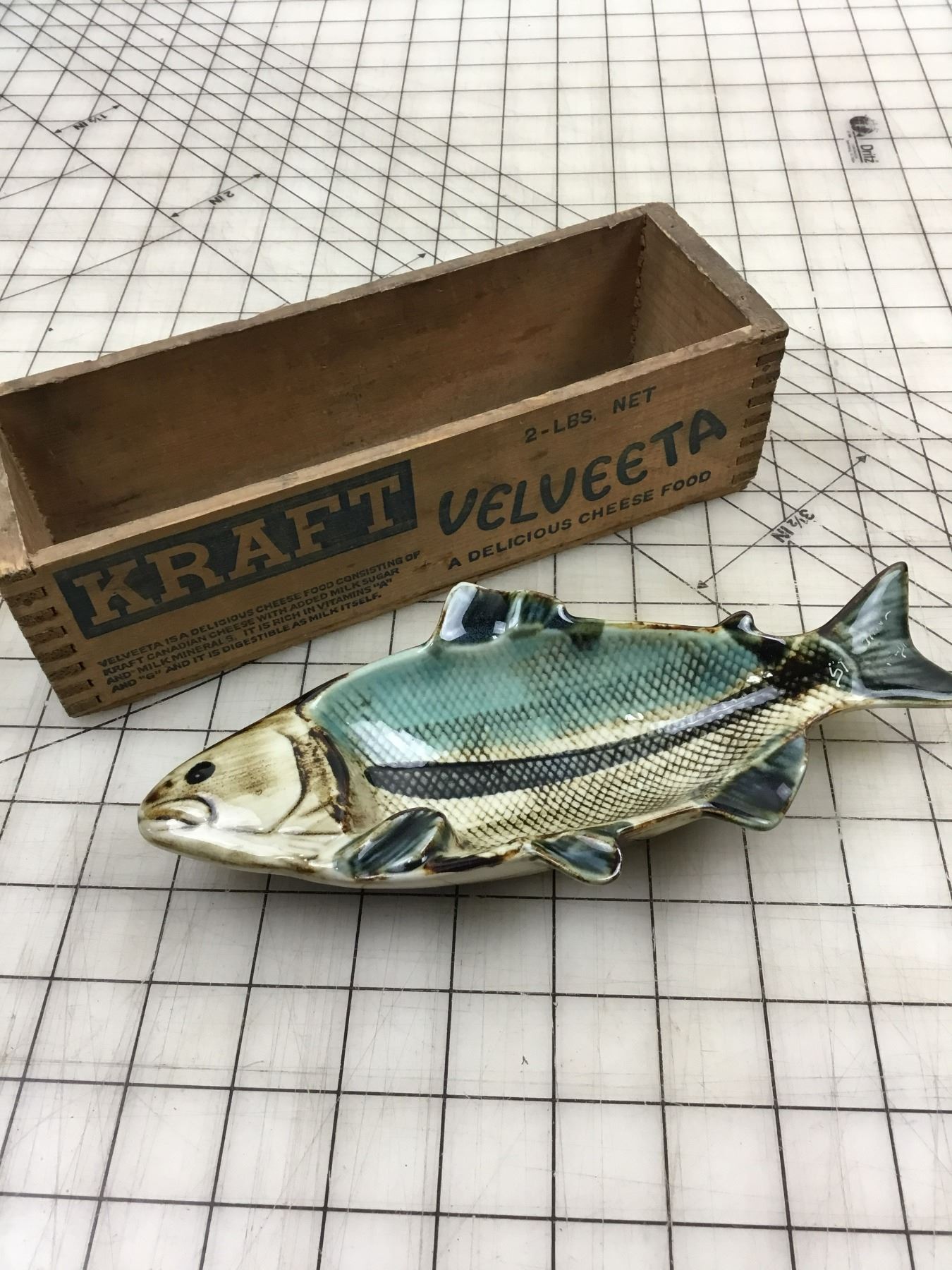 VINTAGE FISH ASHTRAY AND WOODEN CHEESE BOX