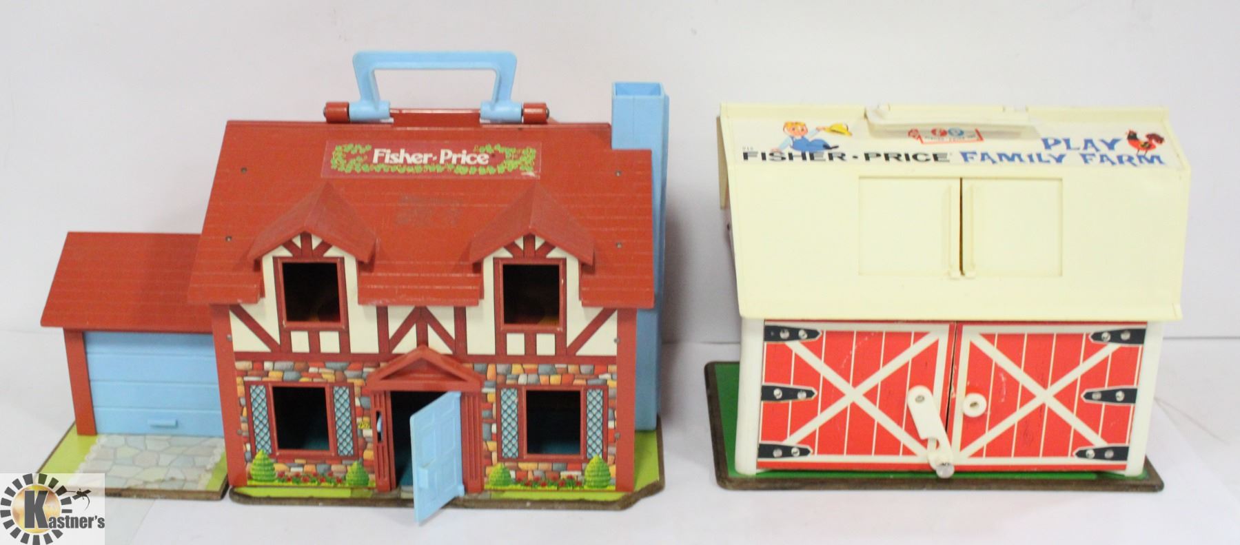 VINTAGE FISHER PRICE BARN W/ FIGURES & HOUSE