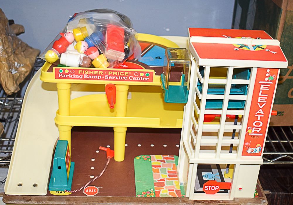 VINTAGE FISHER PRICE CAR GARAGE W/ ACCESSORIES