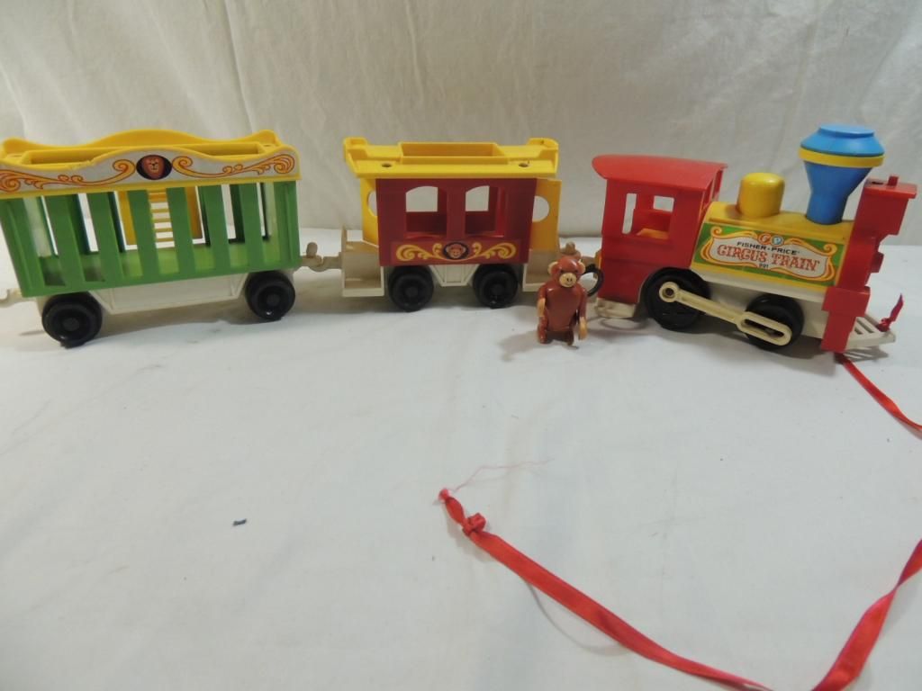 THREE PIECE TRAIN SET. VINTAGE TOY TRAIN SET. CIRCUS TRAIN GOOD CONDITION. AS SHOWN SEE PHOTO FOR MORE DETAILS.
