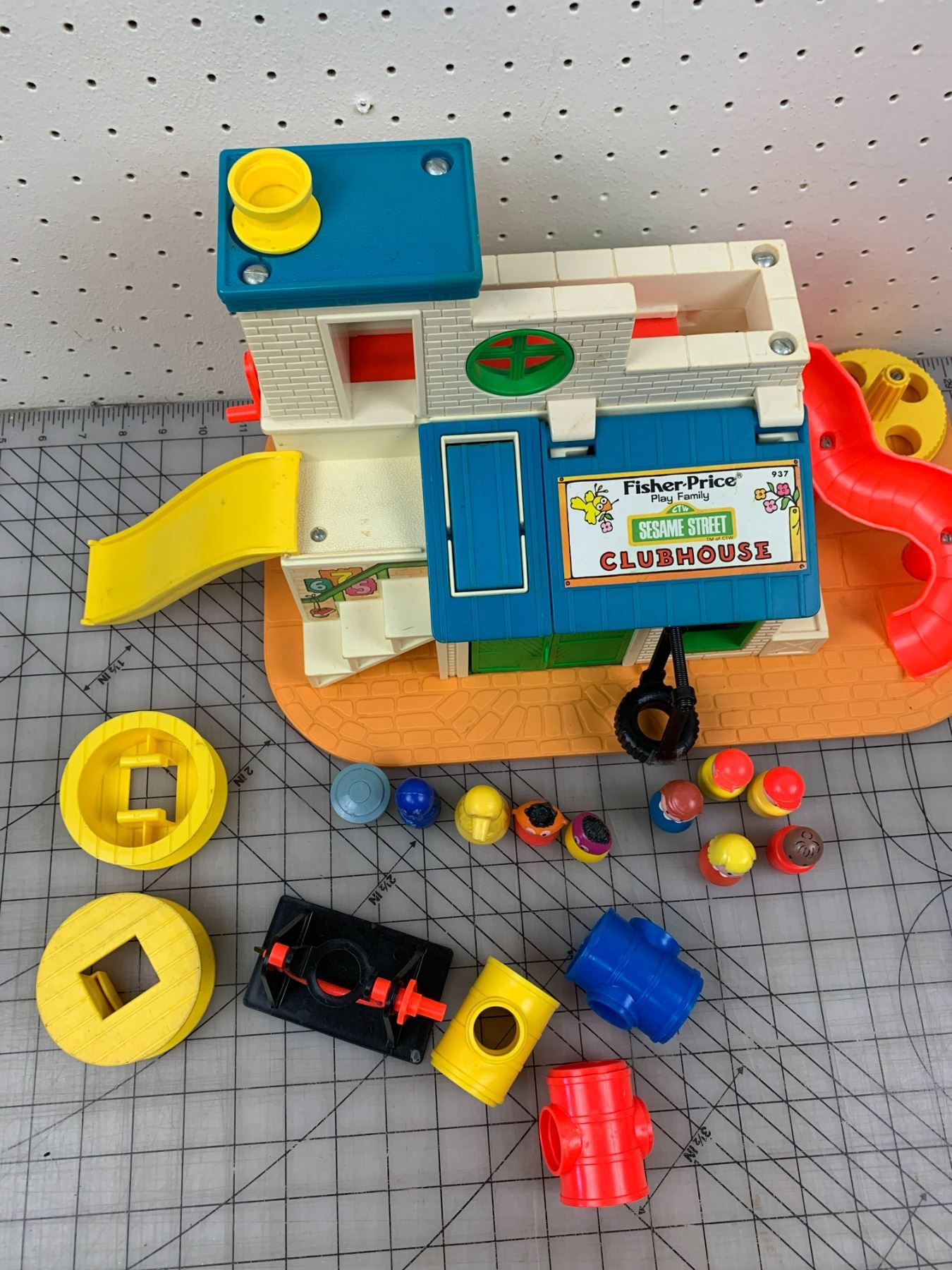 VINTAGE FISHER PRICE SESAME STREET CLUBHOUSE TOY SET
