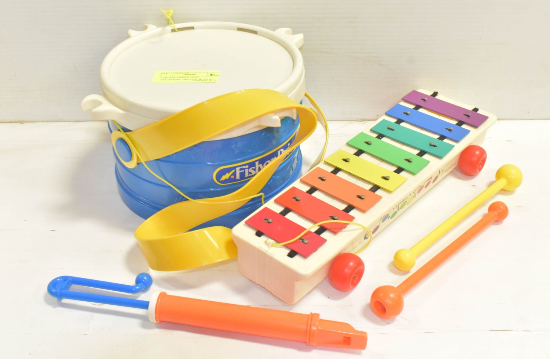 VINTAGE FISHER PRICE ZYLOPHONE, DRUM, & MUSICAL