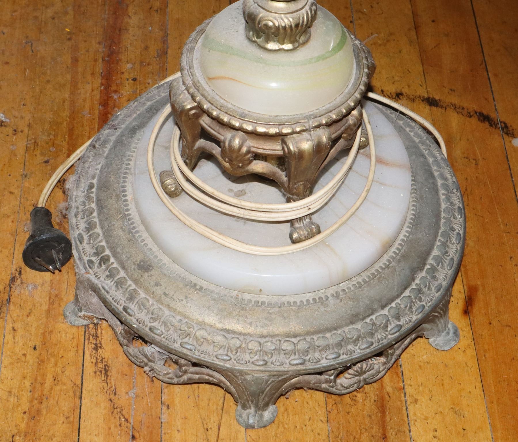 MILK GLASS SHADE, HEAVY BASE WITH STONE
