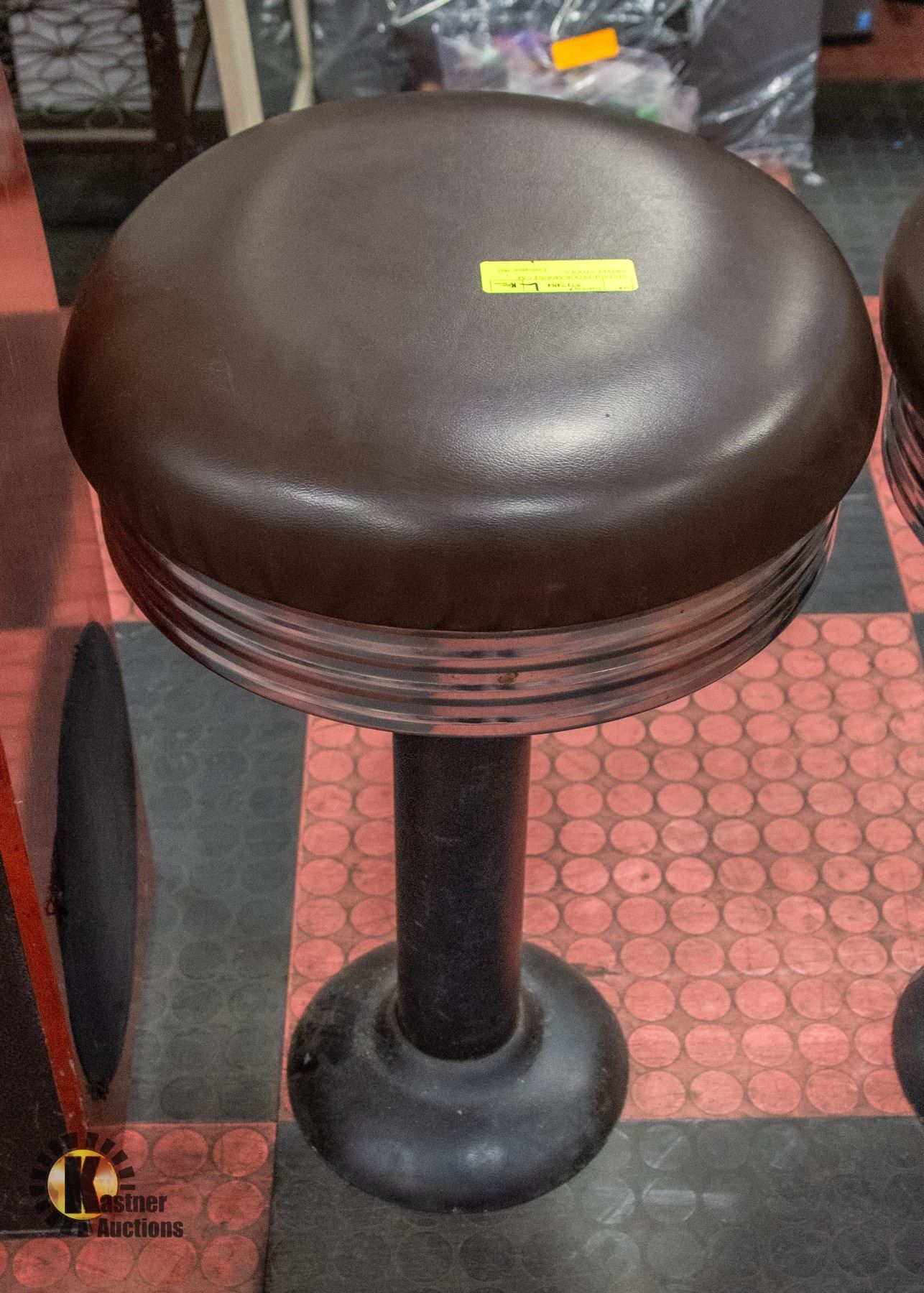 DARK BROWN PADDED LEATHER SEAT WITH WIDE CHROME ACCENT BAND - BLACK METAL POLE WITH BOLT-DOWN BASE (24"H X 15"-DIAM.) **ALL ITEMS MUST BE REMOVED BY 5PM SATURDAY, OCTOBER 28TH 2023. ALL REMAINING ITEMS WILL BE SUBJECT TO A $6.00 PER DAY STORAGE CHARGE. ANY ITEMS REMAINING AFTER MONDAY, NOVEMBER 13TH, 2023 WILL BE CONSIDERED FORFEITED. NO REFUNDS WILL BE ISSUED FOR FORFEITED ITEMS. TO SCHEDULE A PICK UP APPOINTMENT CLICK HERE